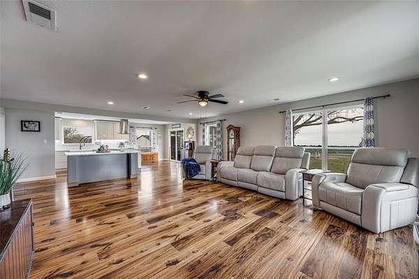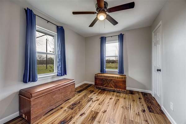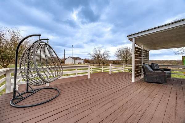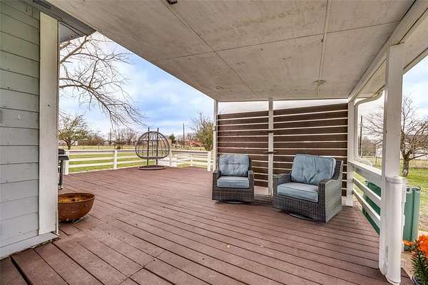 Escape to your own private retreat on 6 unrestricted acres outside city limits and not in an ETJ, offering endless possibilities—from a small farm or horse boarding to a tiny home village or other investment ventures. This beautifully updated single-story 4-bedroom, 2-bath home combines rustic charm with modern comforts. The open-concept layout welcomes you with a spacious kitchen featuring a large island, stainless steel appliances, under the cabinet lighting, and a cozy eat-in dining area—perfect for everyday living or entertaining. Unwind in the primary suite's clawfoot tub, adding a touch of vintage luxury to your personal oasis. Step outside to a large deck, ideal for hosting or simply soaking in the peaceful countryside while enjoying sunsets or harvesting pecans from your own trees. Animal lovers will appreciate that there’s plenty of space to roam, build, or expand. With space, privacy, and investment potential, this property truly offers the best of country living without sacrificing modern convenience. Foundation w-transferable warranty (2026). HVAC, septic, French drains, & roof (2023). INCLUDED - Fridge, washer, dryer, microwave, laundry cabinets, Ring doorbell & 2 Ring cameras, raised garden beds, and rain barrels