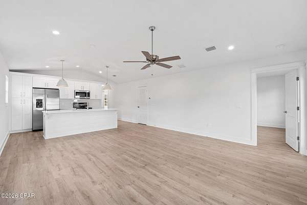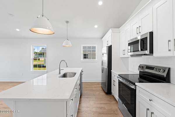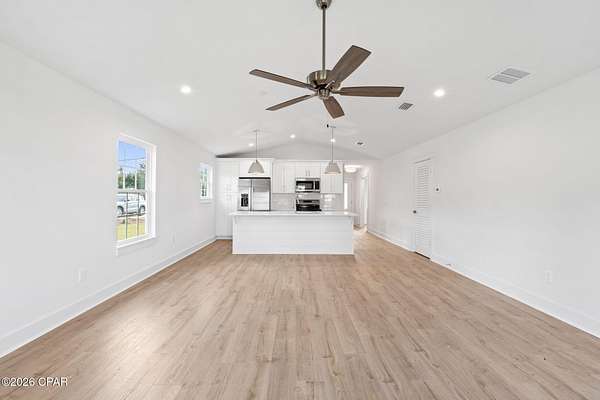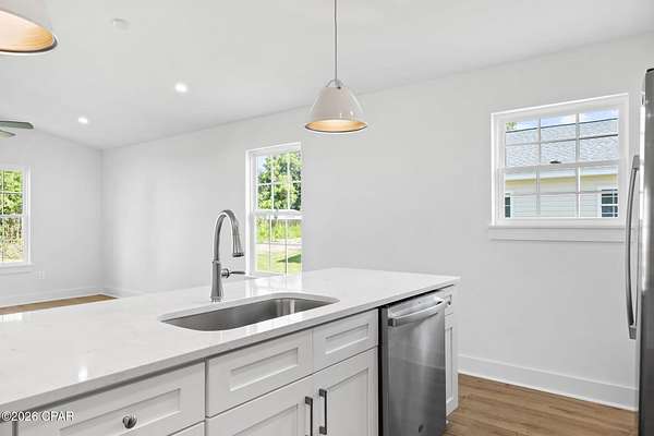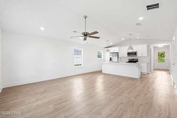 Set to be complete End of January 2026! This thoughtfully designed cottage home in Panama City is a smart move for anyone looking for quality, comfort, and convenience. This 3 bedroom, 2 bathroom open concept floor plan is a great starter home. A one car garage with plenty of storage and an expansive lot for creating your own backyard oasis. Just minutes from Tyndall Air Force Base, public boat ramps, parks, and all the essentials of town, this location offers the best of both peace and practicality. Step inside to vaulted ceilings, tons of natural light, and an open-concept layout that feels spacious yet inviting. The kitchen delivers serious style with sleek quartz countertops, stainless steel appliances, soft-close shaker cabinets, and a large island perfect for hosting or your morning coffee routine. Durable vinyl plank flooring runs throughout. No carpet = no stress or mess. The split-bedroom floor plan gives you privacy where it counts. Outside, enjoy fresh landscaping, a wide driveway, one-car garage, and no HOA, which means no restrictions on your boat, trailer, or weekend toys. Whether you're a first-time buyer, military relocation, or investor looking for a strong rental, this brand-new build checks all the boxes. Don't miss your chance to get into a new home without the wait. Schedule your showing at 931 Bonnie Lane today and see what easy living looks like.