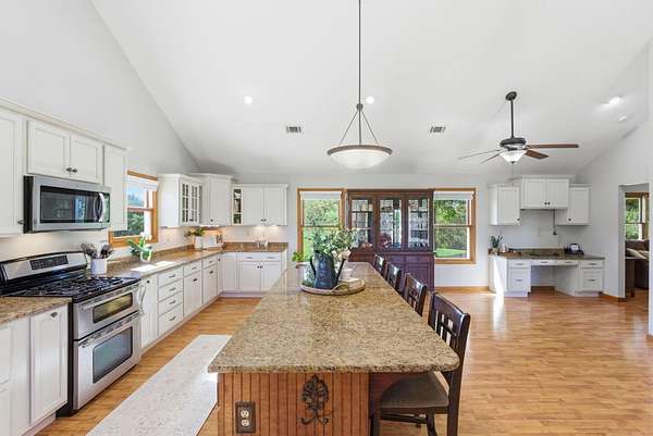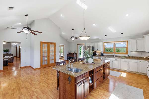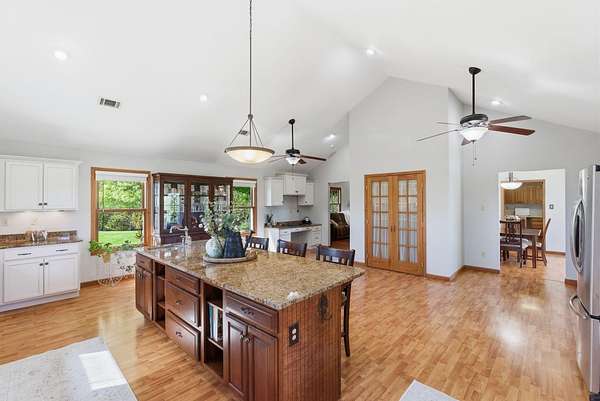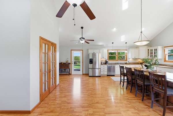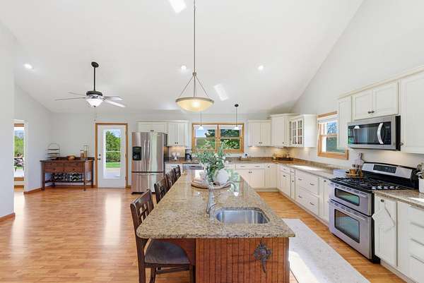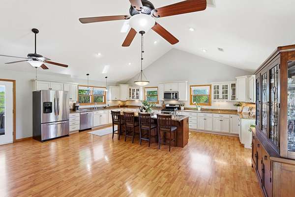 Welcome to 931 Dryden Road with quiet living on 30 beautiful acres. Tucked at the end of a tree lined drive, this property offers the kind of privacy and setting that is getting harder to find. The land is thoughtfully set up for a working homestead with pastures for livestock, barns with electricity and lighting, and a 34 by 40 shop ready for hobbies, storage, or business use. The current setup could supports goats, chickens, and small livestock with ease, including a fully contained room with sink and electric in one barn and a chicken coop with outdoor access in another. A secondary pasture with an additional barn, and a smaller paddock provides flexibility for rotation or separation. Inside, the home delivers in a big way with a stunning 24 by 26 kitchen featuring a cherry island, granite countertops and soaring 16 foot ceilings. This is a space designed for gathering and everyday living. The super sized laundry room with easy access is perfect for the adventures of the land. The first floor primary offers convenience and comfort. A small bedroom or home office finishes the main floor. The second floor provides two guest bedrooms and a full bath, while the mostly finished basement provides additional living space for whatever your lifestyle needs. The property itself is just as special as the improvements with rolling fields, abundant wildlife including deer and turkey, a spring fed pond and a small creek at the back both perfect for exploring or unwinding. All of this while still being just 18 miles to Toyota and under 8 miles to I 75. If you have been looking for space, privacy, and a property that supports the way you want to live, this is the one you need to experience in person.