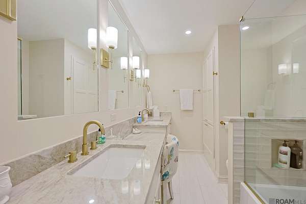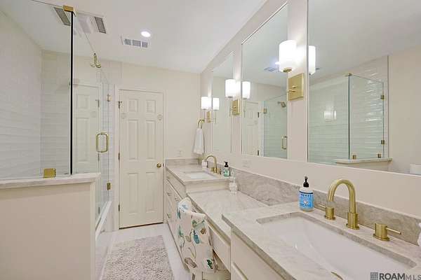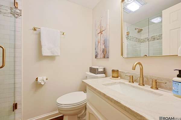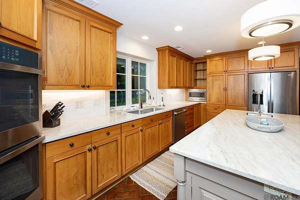 RARE FIND IN WOODSTONE ESTATES....So much is NEW.....ROOF, PAINT and the list goes on. This is a "Real Home", located near LSU, shopping, restaurants, hospitals. This home was built and maintained with perfection, quality, craftsmanship and function. It boasts an elegant yet homey feel. With wood and brick floors, double living room with fireplace and wet bar that overlooks a streaming brook. Plenty of room for couple, family and the grans. The back yard has a large covered patio, uncovered patio with a fountain overlooking lush mature landscaping and the sound of the brook. Every bathroom has been completely renovated with NEW TOILETS, NEW WALLS, TAJ MAHAL QUARTZITE COUNTERTOPS throughout, NEW TILES, TUB, SINKS, MIRRORS, LIGHTING AND PLUMBING FIXTURES. The Kitchen has been completely remodeled with NEW LGHT FIXTURES, CAN LIGHTING, NEW APPLIANCES and EXTRA LARGE ISLAND WITH TAJ MAHAL QUARTZITE COUNTERTOP.