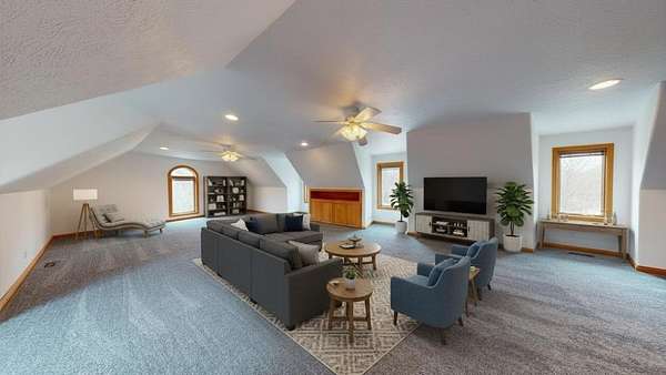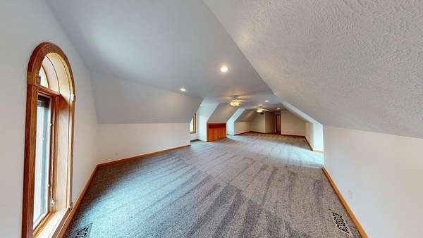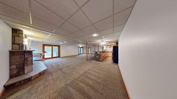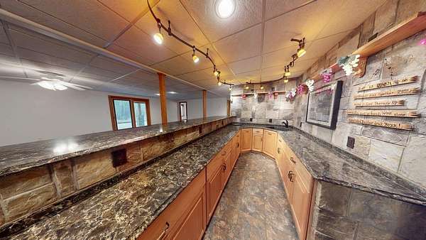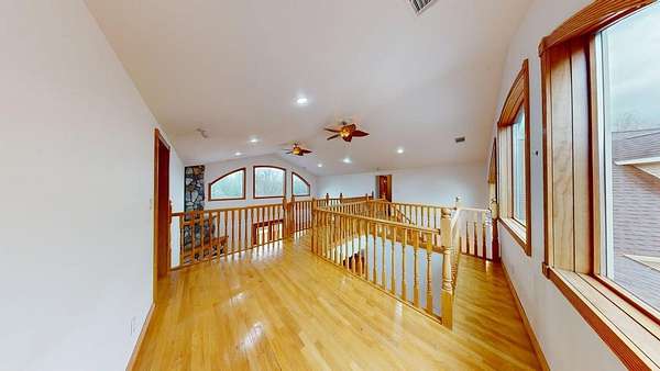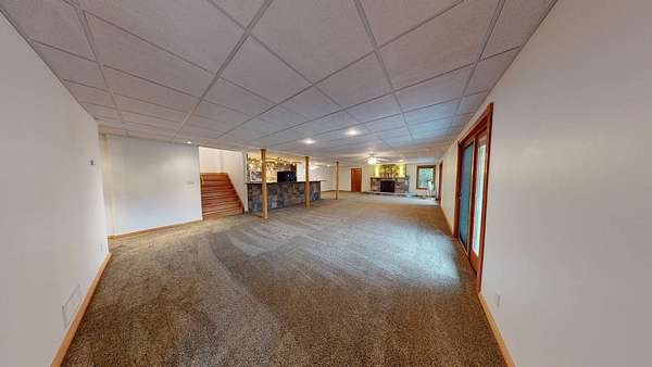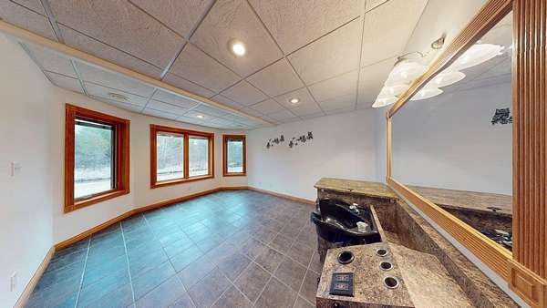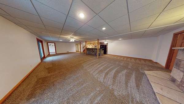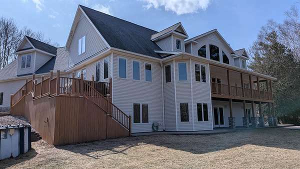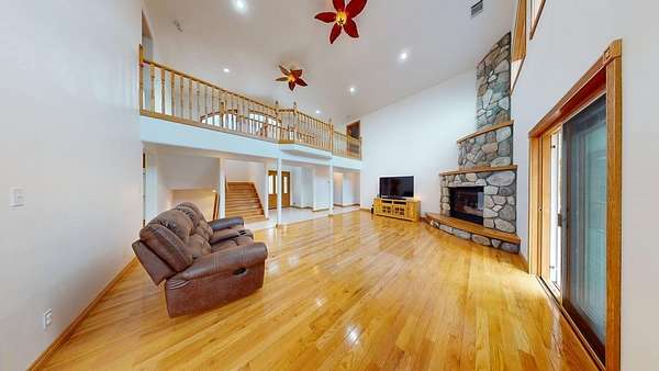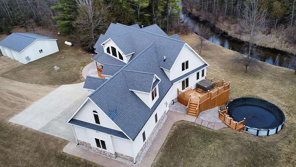 Words cannot describe this riverfront retreat set on 19 beautiful acres, offering space to relax, explore ,and enjoy nature right in your backyard. Tucked 1/4 mile off the road, this 4-bedroom, 3.5-bath home provides a warm, inviting feel with room to spread out. The main floor living room features soaring ceilings, rich hardwood floors, and a floor-to-ceiling stone fireplace that creates a stunning focal point. Large windows fill the home with natural light, bringing the outdoors in. The kitchen is both functional and welcoming, offering classic oak cabinetry, ample counter space, and a center island perfect for gathering. Quality craftsmanship is evident throughout, with details like bullnose drywall and beautiful oak trim. Upstairs, a catwalk balcony overlooks the main living area, adding character and an open feel. The finished basement adds versatility with a full bar and dedicated salon space—ideal for entertaining, hobbies, or a home-based business. Outside, this property continues to shine. Enjoy riverfront views, wide groomed trails, and a second-story deck overlooking the water. The patio features a built-in fireplace and seating area, while the hot tub and above-ground pool make summer entertaining easy. Complete with a 3-car attached garage and a 30x40 pole barn, this property offers the perfect blend of privacy, space, and comfort.