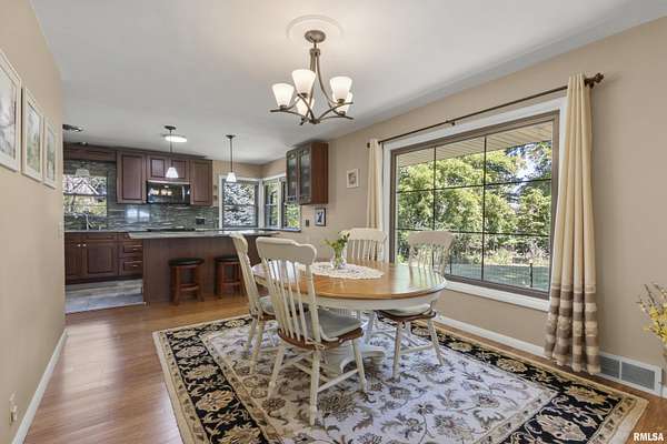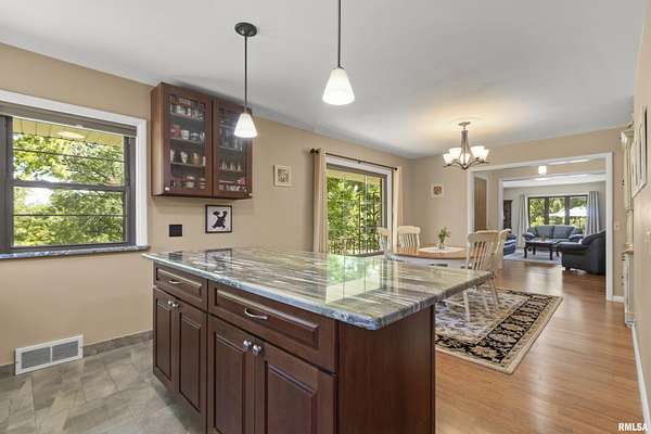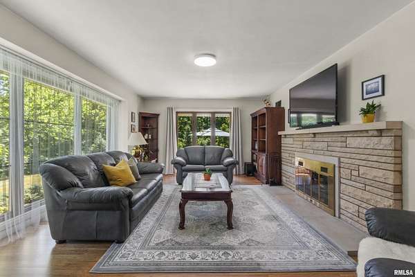 Welcome to this stunning property nestled in N. Peoria, minutes from shopping, restaurants, and schools. This exquisite home is set on over 2 acres, offering a country feel and breathtaking seasonal views of the river and nature. With three spacious bedrooms and two pristine bathrooms, this residence promises comfort and tranquility. This expansive property is surrounded by mature trees, providing a sense of privacy and connection to nature. The beautifully landscaped acreage is a peaceful oasis; a wonderful spot for outdoor activities and enjoying warmer months. The highlight of this beautiful home is the renovated kitchen, featuring granite countertops and a grand island perfect for culinary enthusiasts or gatherings. The modern design blends style and functionality, ensuring a superb cooking experience. Just in the next room, the inviting living room is a cozy retreat, boasting of a stone fireplace and large windows. The design offers a warm and welcoming atmosphere, ideal for relaxing or entertaining. All three bedrooms offer great natural lighting and extra space. Downstairs, the basement is partially finished with a great room, plus additional rooms and storage. This rare gem combines the beauty of nature with the conveniences of modern living; come check out this listing!