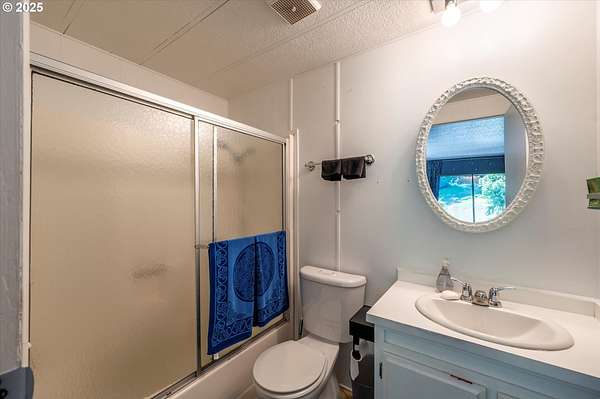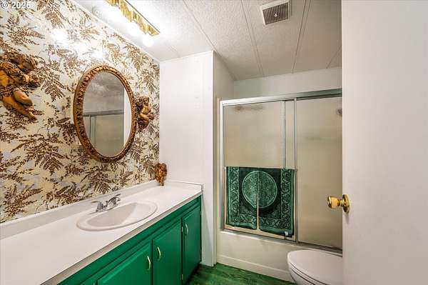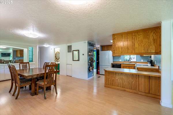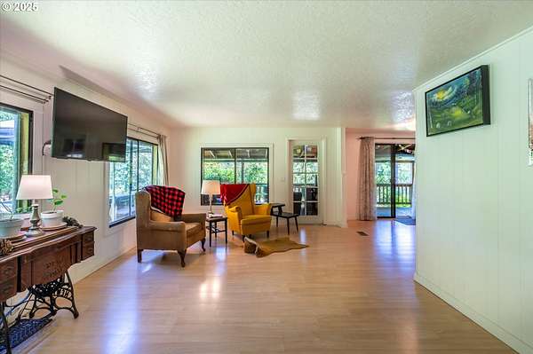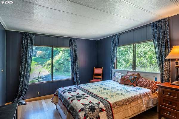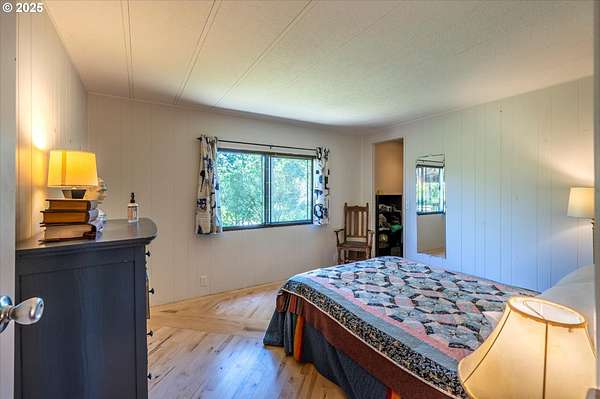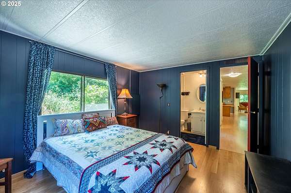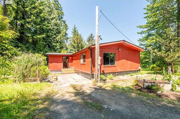 Need a large living space with room to grow? Value privacy? This could be the home for you! 1920 square foot, well-maintained, older manufactured home nestled on 3.66 acres with room to add an ADU, shop, or garage. 2 bedrooms, 2 full baths, open layout living/dining area, plus large bonus room perfect for use as an office, craft room, or flex space. This home has many updates and improvements including a new roof (2021), new lateral water line (2020), newer water faucets/fixtures and toilets in both bathrooms, newly installed vapor barrier (2024), & new front exterior stairs (2025). Furnace is updated with smart thermostat. Energy Trust recently serviced the furnace and sealed all heating ductwork for optimal efficiency (2024). Custom Pergo and hardwood floors (maple, white oak, & red oak) throughout. Surrounded by stands of mature trees, you'll enjoy privacy whether you're sitting on the covered deck, mowing the lawn, or working in the raised garden beds. Loads of room for RV/boat/trailer parking. Contact your Realtor to schedule a showing and experience the quietness and seclusion this affordable home has to offer. Buyer to do all due diligence for zoning/permitting any additional builds.