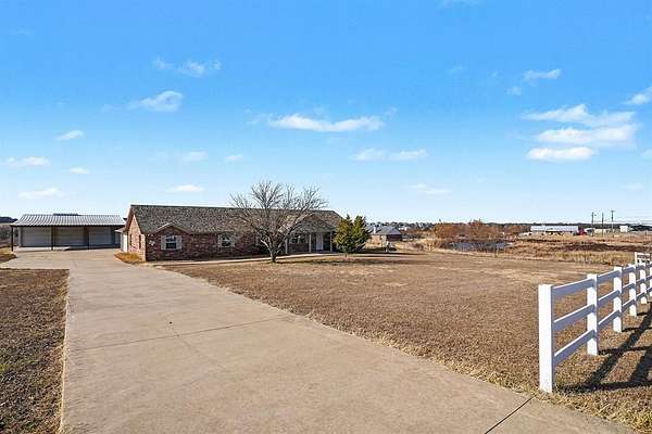 Welcome to the country! This lovely home sits on over 2 acres and is less than 10 min from Chisholm Trail Pky providing quick access to Ft Worth and surrounding communities. Carpet in bedrooms, hard surfaces in common areas, ceiling fans, and a cozy fireplace in the living room. The master suite offers serenity after a long day in a soaking tub, separate vanities, and walk-in closet. The open-concept kitchen makes meal prep time easy to watch the kids or enjoy guests while making your favorite dish. Lots of cabinets, a pantry, decorative backsplash, and stainless appliances. The spacious laundry room includes a full-size washer-dryer and a 2nd refrigerator. There is a fenced backyard with room to play fetch with the dog or enjoy stars at night. One of the best things about this property is the large workshop in back that boasts 3 garage door stalls, vehicle lift, a carport, and extra storage loft to maximize space. This is a must-see home that is ready to move in before the holidays! Tenant to confirm schools. Washer and Dryer pictured are not included.