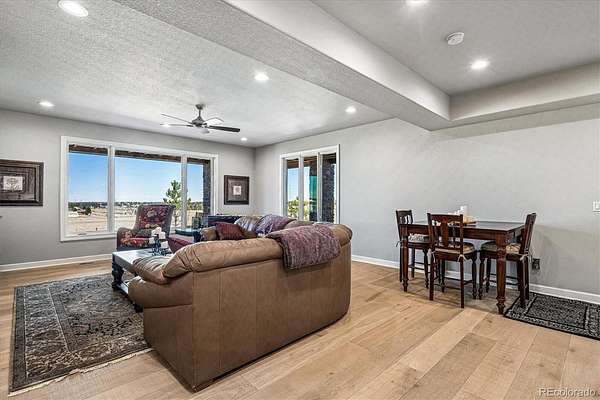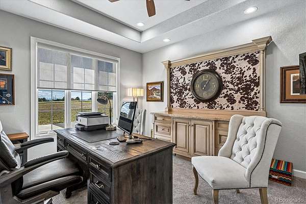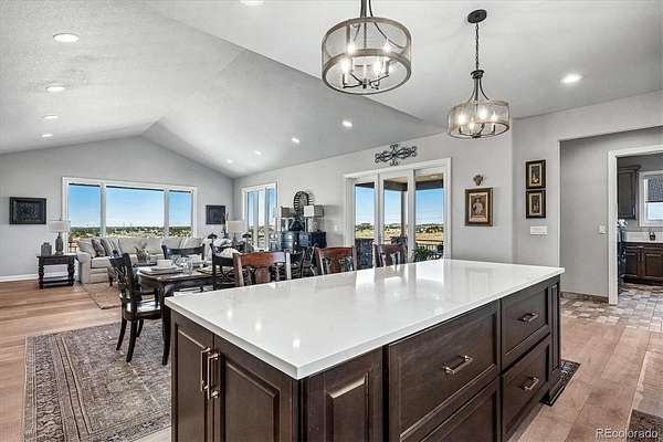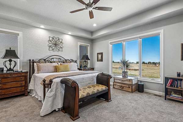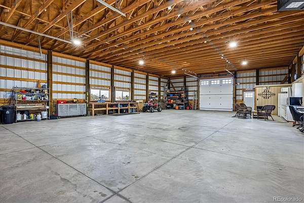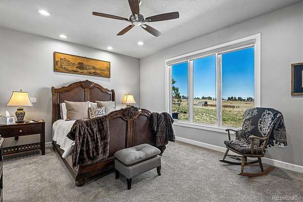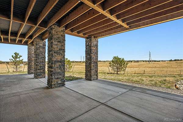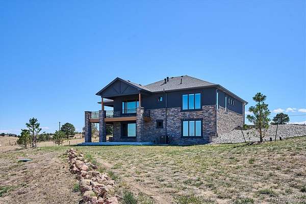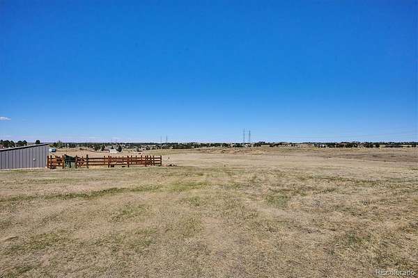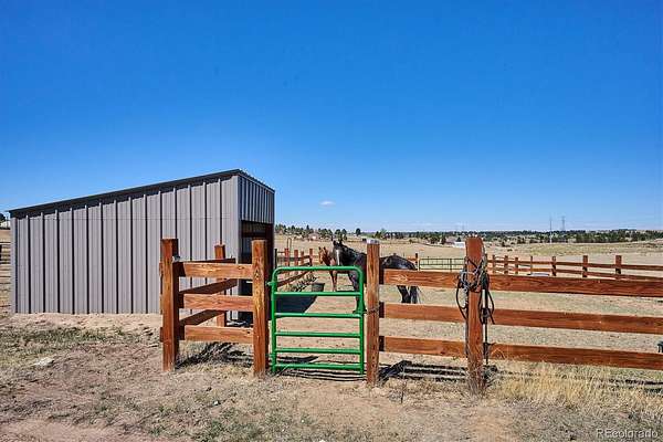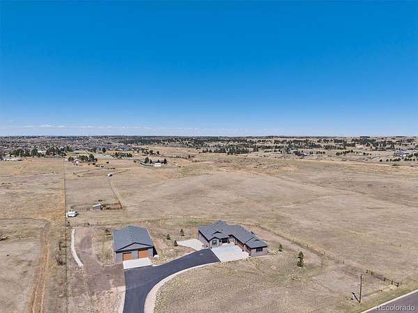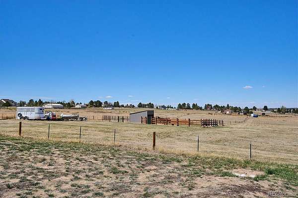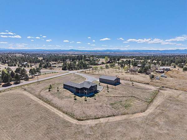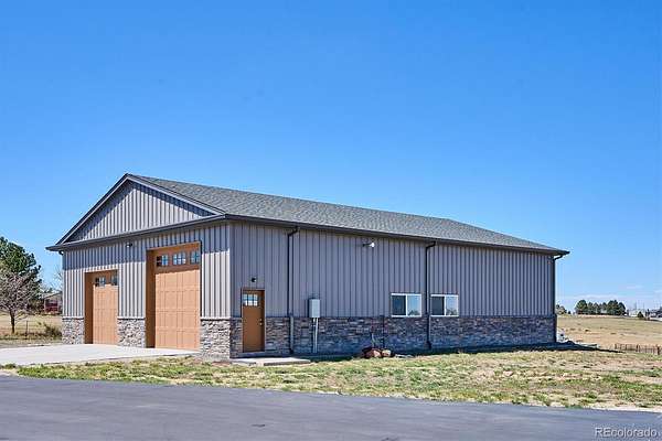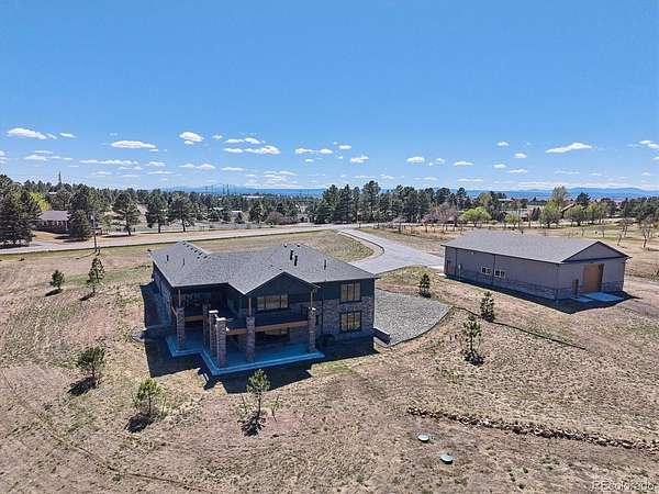 LOCATION! Location! Location! Minutes from Downtown Parker & E-470.Don't miss this coveted custom engineered stone & stucco built Ranch with fully finished Walk-out Basement on 10.16 Acres all set up for your livestock needs with 20 acre adjacent parcel available for sale.The entrance sets the tone for a home that is rich in detail & luxury. The heart of this home is its open concept main level where wood plank floors span the space with natural light and elevated by impeccable craftsmanship & attention to detail throughout. The Great Room features vaulted ceilings, a cozy gas fireplace, & expansive windows. The chefs gourmet kitchen will please the most discriminating. It is a masterpiece of design and functionality, boasting top of the line Kitchen Aid appliances with dual fuel range gas cooktop & electric oven, also a built in oven & microwave. Featuring oversized Quartz island with plenty of cabinets & a large walk-in pantry. The primary suite is a sanctuary of tranquility with coffered ceilings, coffee/beverage center, five piece bath with free standing soaker tub, walk in shower, & walk in closet. The main floor dedicated office is perfect for remote work or a creative escape. The fully finished walk-out lower level provides incredible versatility, featuring a spacious family room with gas fireplace, wet bar, Refrigerator & built in cabinets. 3 Extra Large bedrooms all with their own 3/4 baths & walk in closets, 2nd laundry/utility room & a 2 person light therapy sauna. Step outside to the expansive wrap around upper & lower decks totaling 1100 square feet. The 3 car attached garage is oversized, drywalled, finished, heated, flr coated, & insulated. The MECHANICS DREAM is the detached custom built shop which includes 2 12 'X 12', & 1 10' X 10' door with side mount openers. Shop features 2688 Sq. ft. 1/2 bath, refrigerator, cabinets, work bench, heated. Zoned for Domestic livestock. Come see for yourself Colorado living at its finest. Its a way of life.
