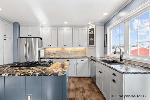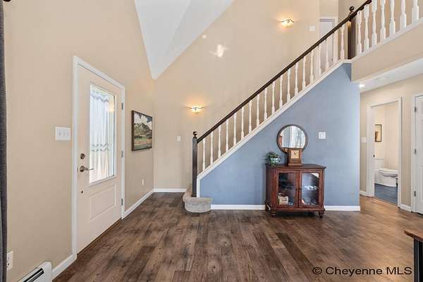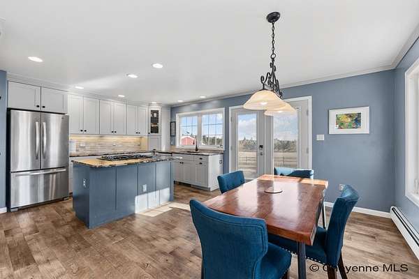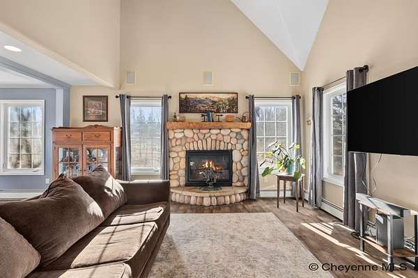 Est $3,937/moWell-maintained country property just minutes from town. This 4-bedroom, 4-bathroom home offers vaulted ceilings, abundant natural light, and a stone fireplace in the main living area. The kitchen and dining space flow nicely for everyday living and entertaining. The property includes a three-car detached garage, an outbuilding with stalls, and a small pasture, making it a great setup for horses, hobby livestock, or extra storage. Peaceful setting with room to spread out while still enjoying convenient access to Cheyenne.