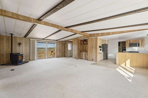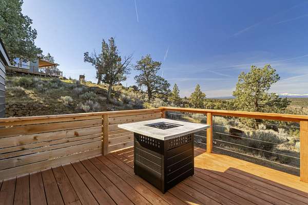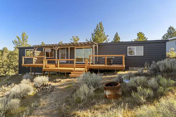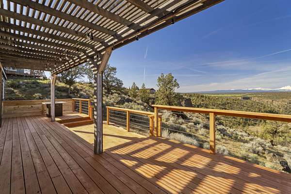 RARE VIEWS of the mountain looking down the canyon below from this spacious 1,800+ sqft home. Exceptional floor plan features primary bedroom separation from the two guest rooms by a formal dining room and an expansive living room w/ vaulted ceilings, cozy pellet stove, & massive slider to enjoy the view. Kitchen renovation includes custom concrete countertops, hickory cabinets, SS appliances and recessed lighting. Off the kitchen is a laundry room and walk-in pantry! Primary bathroom remodel includes new shower, vanity, lighting, large walk-in closet, and fixtures. Step outside onto a new rear deck with pergola and fire pit. Other updates include: PEX plumbing, new roof, new exterior paint refinished front deck, new carpet in guest rooms. Paddock out front with a frost-free hydrant is perfect for your horse or hobby farm! Gated, 2-car garage, plus room for your RV! Don't miss out on these views or your chance to join the Crooked River Ranch community!