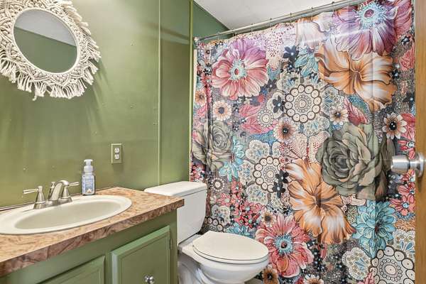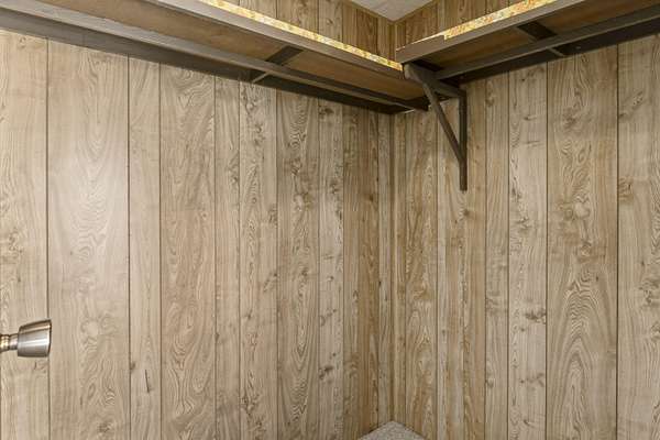 - Breakfast Bar, Built-In Features, Ceiling Fan(s), Central Vacuum, Fiberglass Stall Shower, Linen Closet, Open Floorplan, Pantry, Primary Downstairs, Shower/Tub Combo, Solid Surface Counters, Vaulted Ceiling(s), Walk-In Closet(s)