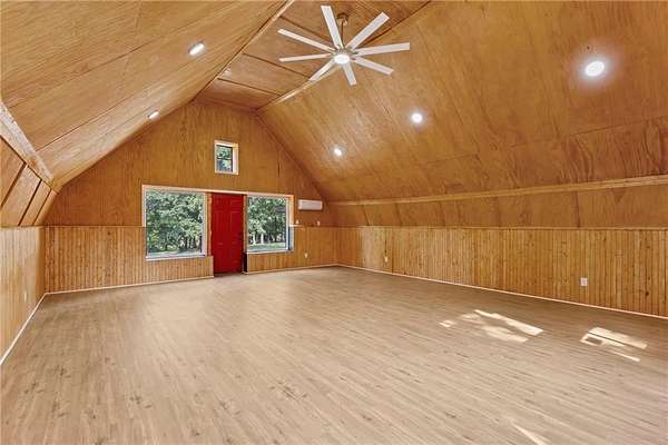 Welcome to this one-of-a-kind oasis. Looking for that rural feel, but don't want to leave the city? Look no further! Nestled on 3 acres with close highway access, this fully renovated home will dazzle you with high-end finishes. With 5 bedrooms and 4 bathrooms, you'll have plenty of space for the family, or extra room for hobbies! You'll also want to spend time outside on this beautifully treed property, enjoying the spacious deck, sitting around the fire pit, or in front of the pond relaxing with the fountain. The gated driveway provides security with remote operation. Also, take a look at that barn! Plenty of garage space below with a very generous recreation/hobby, climate controlled space above!