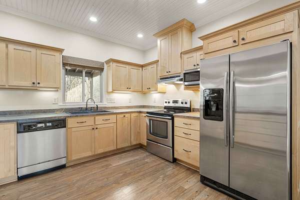 Nestled on 33 private acres with approximately 1,000 feet of river frontage, this rare 2-bedroom, 2-bath property offers a peaceful retreat just a short drive from Nashville. The property features cleared trails leading to the riverfront, perfect for exploring, camping, or quiet reflection. Abundant wildlife and excellent bow-hunting opportunities make this a nature lover's dream. Enjoy the serenity of expansive acreage, flowing water, and wooded surroundings while staying conveniently close to city amenities. Interior highlights include plantation shutters and hardwood floors throughout; an open-concept living, dining, and kitchen area with stainless steel appliances; custom built-ins flanking a propane fireplace; and a spacious primary suite with a walk-in closet and built-in vanity. An additional room just off the living space is perfect for a home office or craft room. Outdoor living shines with an expansive screened-in deck, while additional storage is available above the garage. Less than 25 minutes to downtown Nashville; 15 minutes to BNA; 14 minutes to Blue Turtle Bay Marina; less than 15 minutes to both Hermitage Golf Course and Old Hickory Country Club. Please do not enter the property without a scheduled appointment.
