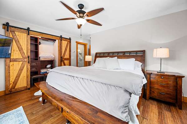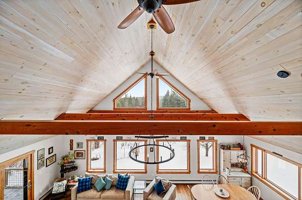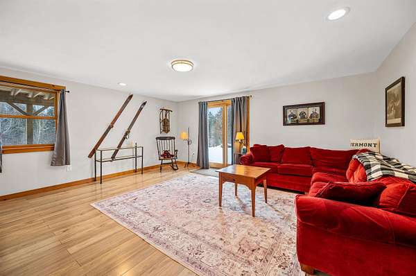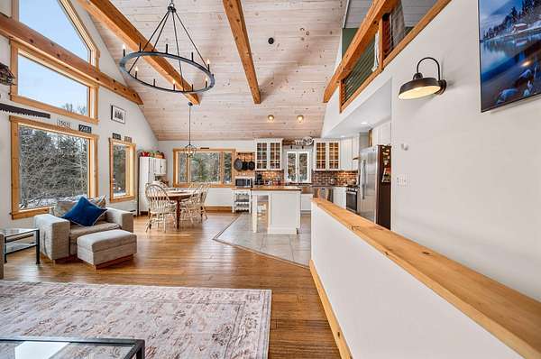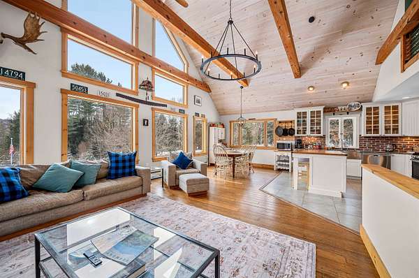 Welcome to this light & bright home on 10+ acres! This 3-BR, 2.5 -BA property has been thoughtfully designed to take advantage of both the indoor and outdoor space. The main level features an open living/kitchen/dining area with 20' vaulted ceilings- perfect for gathering. The oversized windows are plentiful and invite in an abundance of natural light that welcomes the outside in, allowing you to feel connected with the gorgeous surroundings in all seasons. The chef's kitchen is a dream, with plenty of cabinet & counter space and a work island. Open to the living area, it allows you to feel connected to everyone in the house while still whipping up culinary magic. Rounding out the main level is a large primary with en suite that features double sinks and a soaking tub, and a spacious mudroom with radiant heat- the perfect area for all of your outdoor gear! A main level laundry adds to the convenient layout of this home. The lower levels boasts two generously sized bedrooms and a second living space, which could be used for a home office, family room, crafting area, or whatever suits your needs. The second level loft is a fantastic space for relaxing. It's a great bonus area that has so many possibilities: A reading nook, a gathering spot to play games, or extra sleeping space. This area is only limited by your imagination! Take in views of the property and nearby mountains on the large deck- just the right place to begin and end your days, and to entertain in warm months. The large detached barn/garage leaves plenty of room for storage of your outdoor equipment and toys. In addition, a chicken coop is a fun surprise on this property. This home comes fully furnished minus a few personal items. This makes it truly ready to settle right in on day one, or rent the property for income. Close to Morrisville & Stowe, this is a wonderful location that is an easy distance to ski resorts, walking trails, the VAST trail and swimming holes. It's time to call this gem home!