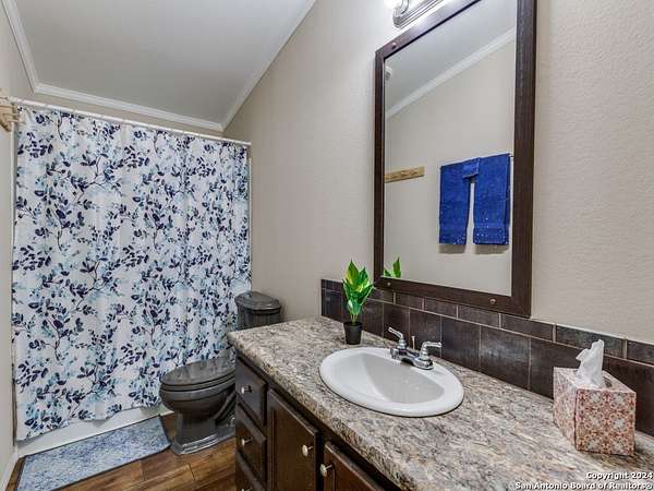Exceptional Hill Country Ranch Estate with a gorgeous Custom home w/ an attached garage that was completed in '22 with the finest craftsmanship, 4 bed/ 2 bath Guest house, huge Workshop (from insulation & HVAC) with Caretaker quarters, attached oversized RV parking pad & a storage building with covered parking! Located at the highly desirable gated Big Draw Ranches, this AG EXEMPT estate spans 66.67 breathtaking primarily level acres. Offering true privacy amongst a lush landscape of wildflowers & native trees that provide cover for wildlife for the hunting enthusiast in a captivating & serene setting! There is only a nominal road maintenance fee. A well-fed pond supports wildlife that include White tail Deer, Axis, Turkey, Doves, Roadrunners & Hogs. Enter through a gated entrance that leads to the impressive home with stone exterior, accented by farmhouse vertical siding, standing seam metal roof & 2 covered patios. Enjoy magnificent morning sunrises, dramatic sunsets & starlit nights beside the stone fire-pit. This extraordinary residence is a balance of rustic elegance with superior artistry! The home encompasses 3 bedrooms, 2 baths with 2,904 sq.ft. of living space & an attached oversized 2 car garage. The home features a light filled Great room with a vaulted ceiling clad with Colorado Milled Aspen, a wood burning stove, stained concrete floors & large windows to take in the wildlife & splendor of the property with stunning views of "Tea Cup Mountain"! Open concept of Kitchen with Dining & Living area makes this an ideal layout for entertaining & relaxation. Gourmet Kitchen features custom cabinets, granite counters & a breakfast bar hand-crafted of mesquite. Woodwork throughout the home is hand made by 1 cabinet maker with Solid hardwood of Knotty Alder for Kitchen cabinetry, Entertainment center, Bookcase, Mud/ Laundry room, Bath cabinets & Guest room Murphy bed. Interior doors of Solid hardwood Knotty Alder. Accent walls in the Primary Suite & 3rd bedroom (used as an office) are rough bandsaw cut Colorado Pine. The luxurious Owner's retreat with 5-piece spa en-suite is a serene sanctuary! 2 spacious secondary bedrooms share a bath. The guest house is situated to afford privacy to the principal residence with a natural tree line. Custom built 2017 Palm Harbor "Big Bend" manufactured home with 4 bedrooms, 2 baths with 2,223 sq.ft. is filled with natural light! Open plan layout with living room featuring a wood burning stove. A fully outfitted kitchen to meet all your guests needs. Inviting Primary bedroom with oversized 5 piece en-suite. Finished with an outdoor deck & a fenced area planted with fruit trees. Upgrades: spray foam insulation under the home, replaced water heater, HVAC upgraded, insulation package and double pane windows. For all your projects & toy storage is a 26x60 Metal Workshop, adjoining caretaker's quarters & attached 26x40 covered RV port with outdoor sink. Improvements: foam insulation, electrical, HVAC/Heat pump. There is a game cleaning station next to the workshop. Hunting blinds, on demand & timed feeding stations are provided for wildlife. Well yield of 20+ GPM with water level 114 ft. below land surface. Well & Pump house system upgrades, & a 2,800-gallon concrete holding tank. Residence & Guest house have dedicated Generac Generators, each supported by Propane Tanks. Residence, Guest house & Workshop with water softeners. Perimeter Fencing- five sides have 4 or 5-foot fencing, the Eastern side has posts with barbed wire. This remarkable Estate provides the consummate setting to entertain guests, hunt & experience the pleasure of the Hill Country while creating everlasting memories! This property offers unsurpassed features: an extraordinarily crafted main residence, impeccable guest house, workshop with caretakers quarters plus a storage structure! Located 8 miles from Junction, 1 hr. to Kerrville & Fredericksburg, 45 min. to Mason, 11/2 hrs. to Boerne & just under 2 hrs. to San Antonio!