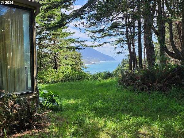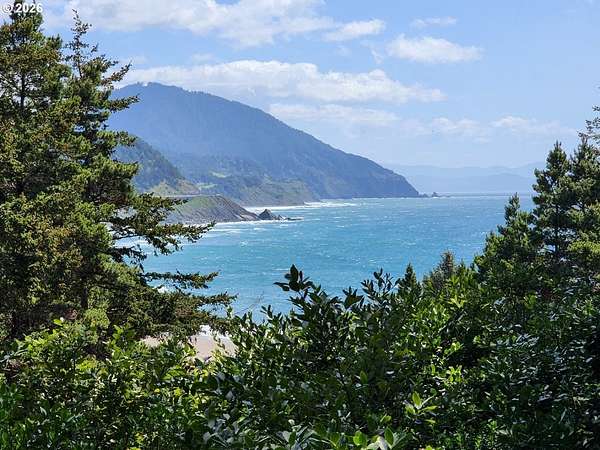 Nestled on 3.12 private acres, this unique Coastal property offers stunning Ocean and Beach views along with a picturesque backdrop of Humbug Mountain. The land is a beautiful mix of level and gently sloped terrain, dotted with mature trees that provide exceptional privacy and a peaceful, secluded setting. The property features a Cabin, detached garage and workshop which all require improvements, a great renovation project! A large grassy front yard opens toward the views, creating the perfect space for relaxing or entertaining. Explore your own network of trails winding through the trees-ideal for hiking, ATV riding, or simply enjoying the natural surroundings. Whether you're looking for a quiet retreat, an investment opportunity, or a place to build your dream Coastal getaway, this property offers incredible potential in a truly scenic location.