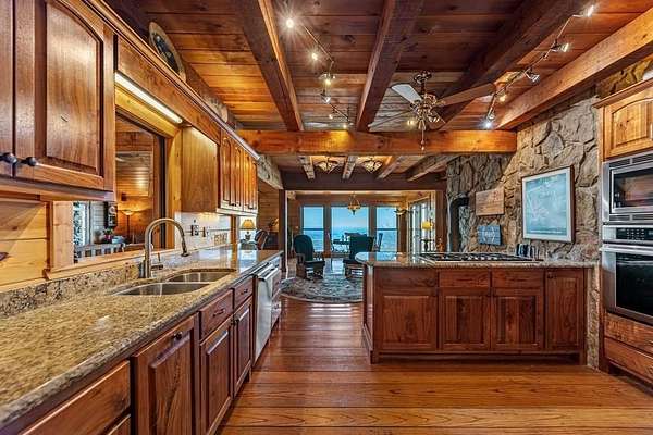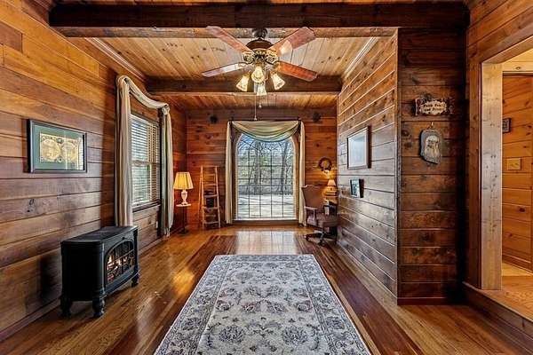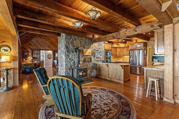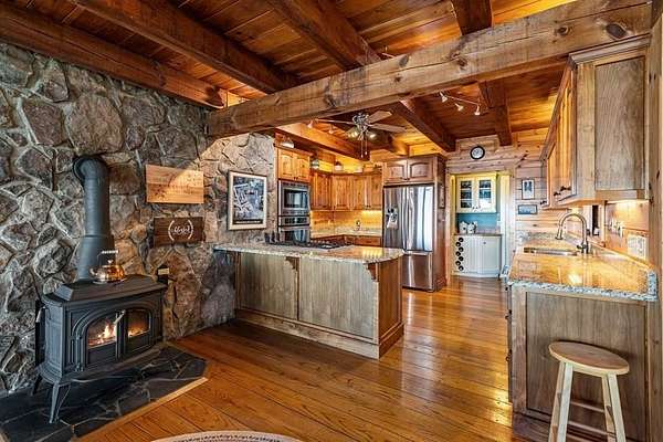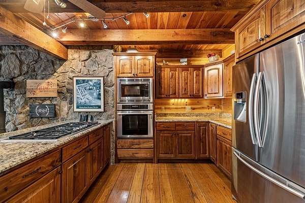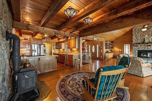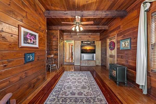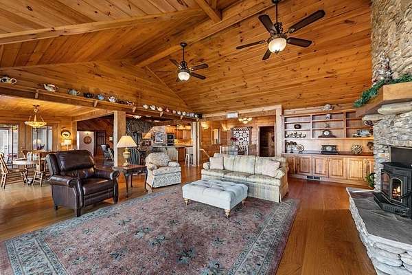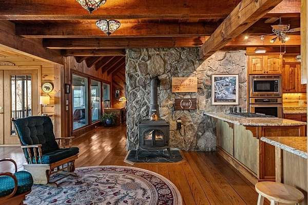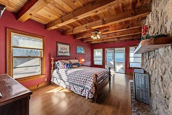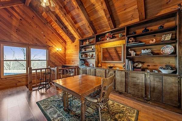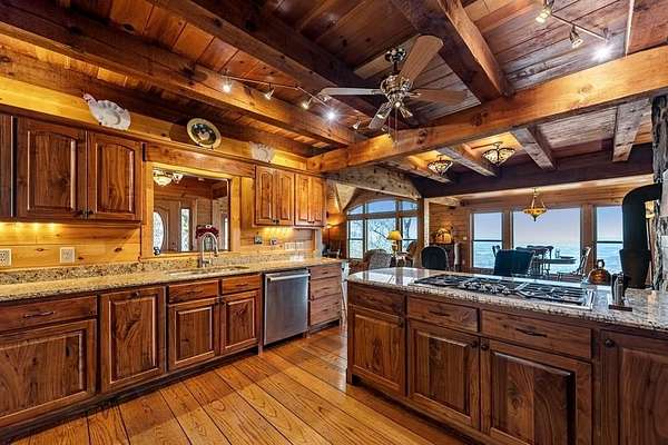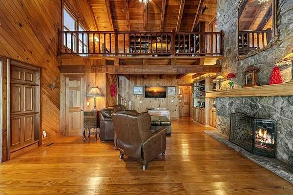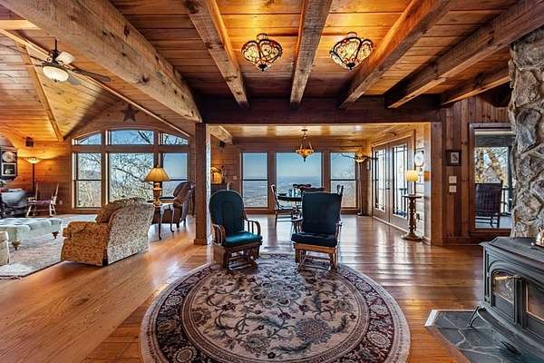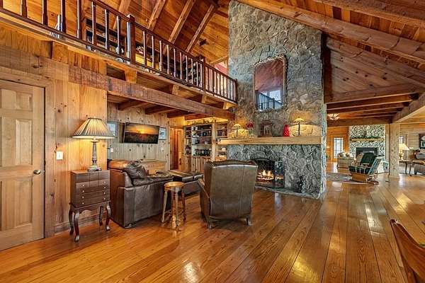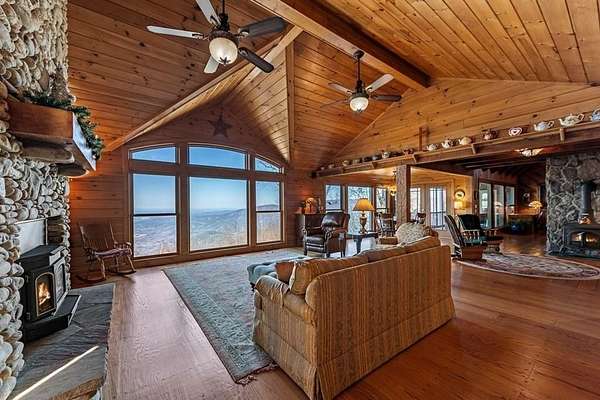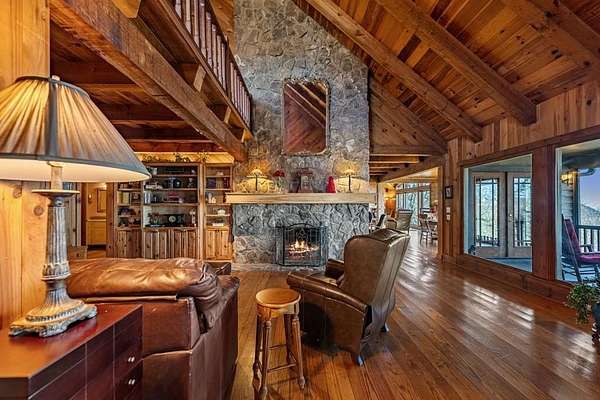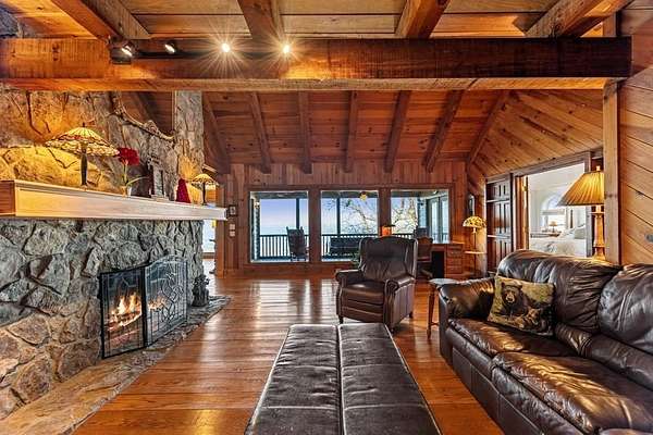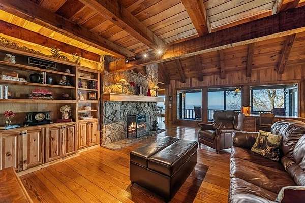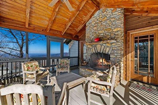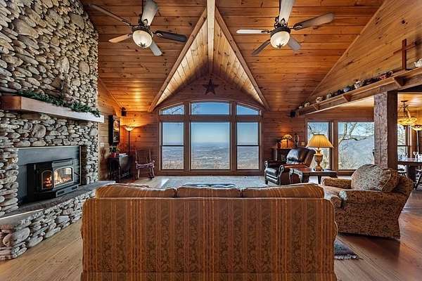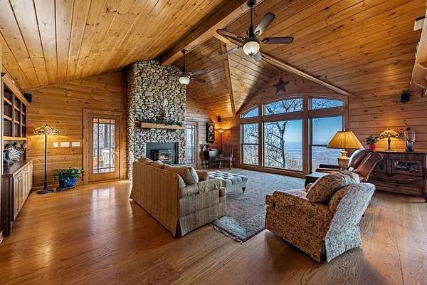 Prepare to be wowed by YEAR-ROUND LONG-RANGE VIEWS from this immaculate 4BR/4.5BTH RUSTIC MOUNTAIN HOME on 5 ACRES, perched atop Fort Mtn. w/ a breathtaking, ever-changing panorama & stunning sunsets. Enjoy UNMATCHED YEAR-ROUND VIEWS that extend across 3 STATES-GA, TN & NC-along w/ sweeping vistas of FORT Mtn. & THE COHUTTA Mtns, offering some of the MOST AMAZING VIEWS AVAILABLE IN NORTH GEORGIA. Offered FOR THE FIRST TIME, this meticulously maintained home features TONGUE-AND-GROOVE WOOD FINISHES, 3 INDOOR FIREPLACES, 1 OUTDOOR FIREPLACE, 2 WOOD STOVES, & expansive SCREENED-IN PORCHES & DECKS designed to maximize the scenery & outdoor entertaining space. Enjoy an open LIVING/KITCHEN/BREAKFAST AREA w/ vaulted & beamed ceilings, custom rock wood-burning fireplace, walnut cabinetry, GRANITE countertops, stainless appliances, & a LARGE BUTLER'S PANTRY. The main level offers TWO BEDROOMS W/ ENSUITE BATHS, including an oversized primary suite w/ gas fireplace, bay window overlooking the view, his/her closets, garden tub, tile shower & adjoining laundry room. Additional highlights include a NEW OVERSIZED OFFICE, large one-car garage w/ built in cabinets, MULTIPLE OUTDOOR LIVING SPACES, gardens, workshop, storage shed, established landscaping, & tiered garden areas. A second main-level living area offers a floor-to-ceiling rock fireplace & vaulted beamed ceilings. Upstairs includes a spacious loft & large bedroom w/ sunroom, ensuite bath & wood-burning fireplace. The finished basement features abundant windows to capture the views, a game room w/ wood-burning stove & slate flooring, sunroom, additional bedroom, kitchenette/eating area & a large covered patio wired for a hot tub. Recent upgrades include NEW EXTERIOR PAINT, NEW WATER HEATER, GENERAC GENERATOR, a 2008 remodel, 2012 kitchen remodel & more. Don't miss this extraordinary MOUNTAIN DREAM HOME only 2 miles from Fort Mtn. State Park, 15 miles from downtown Ellijay, & 9.8 miles from downtown Chattsworth.