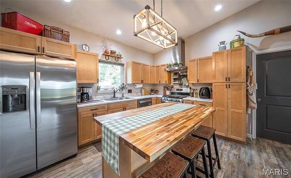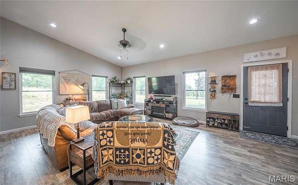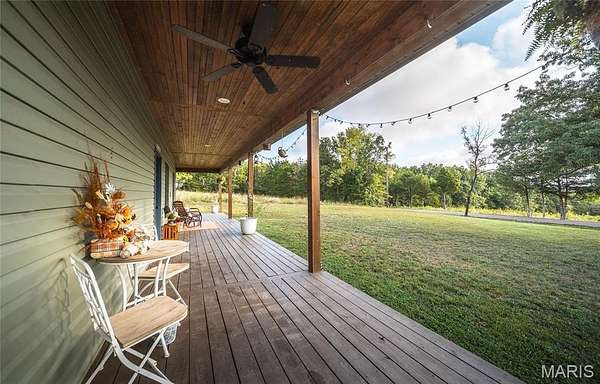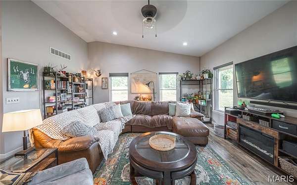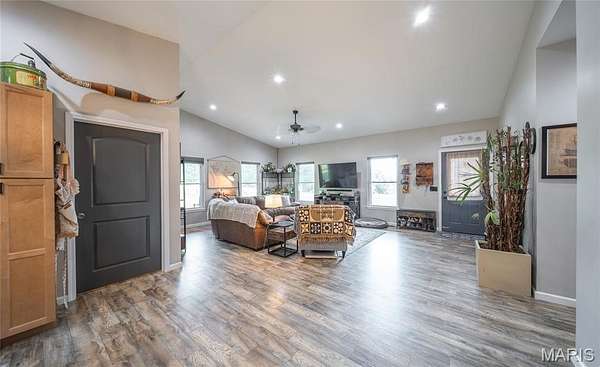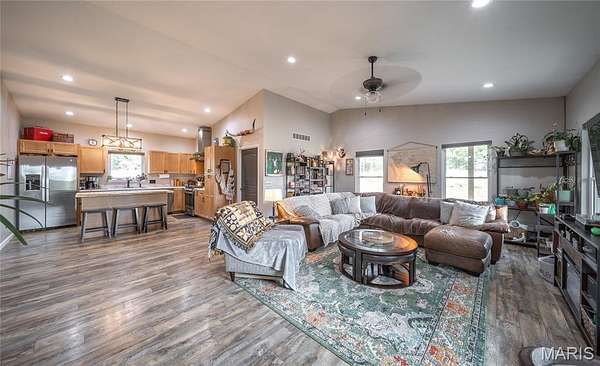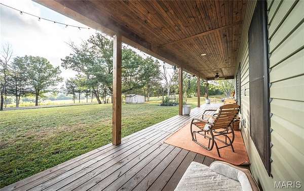 This beautiful 2-bed, 1-bath country home sits on 7.7 acres & combines modern finishes with rustic charm. Built in 2022, it offers the peace of country living with the convenience of updated systems & stylish design. A huge wrap-around porch welcomes you to sit back & enjoy the sweeping views, making it the perfect spot for morning coffee or relaxing evenings outdoors. Inside, the open floorplan & vaulted ceilings create a bright & airy feel, enhanced by luxury vinyl plank flooring throughout. The kitchen is thoughtfully designed with soft-close cabinets, a gas range with hood vent, a large island for gathering & plenty of storage and workspace. The primary bath features a double vanity & dual shower heads, while both bedrooms are complete with walk-in closets for added convenience. An additional corner shower in the laundry/utility area is perfect for cleaning up after working outdoors or for use with pets. Practical upgrades include a durable metal roof, recently replaced siding, a tankless water heater & a high-efficiency HVAC system, ensuring both comfort & energy savings. Outside, you'll find a 450 sq. ft. shed & a 160 sq. ft. shed--ideal for storage, hobbies, or workshop space. The school district for K-8th grade is Strain-Japan R-XVI. Located just 11 miles from Sullivan, 10 miles from Bourbon & 16 miles from Cuba, this property offers the best of both worlds: peaceful country living with quick access to nearby towns. Don't wait. Schedule your showing today.