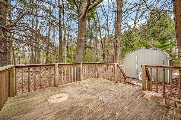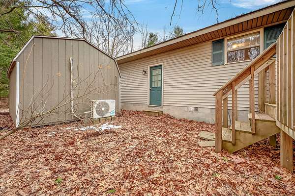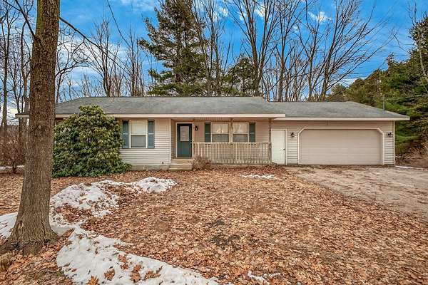 3 bedroom, 2 full bathroom ranch home on 3 wooded acres in the City of Montague, offering a great balance of privacy and convenience. Built in 2000, this one owner home features a comfortable single level layout with a spacious living room with vaulted ceilings and a ceiling fan that creates an open, airy feel. The bedrooms are generously sized, and the primary bedroom includes a private bathroom. Recent updates include fresh flooring and paint, making the home move in ready with immediate possession available. The kitchen features stainless steel appliances, a pantry closet, and a dining area with sliding doors leading to the backyard deck. All kitchen appliances, along with the washer and dryer, are included. Outside you'll find a covered front porch, a backyard deck, and a wooded setting that offers privacy and space to enjoy nature. A storage shed with electricity provides additional storage or workspace. Located in the Montague School District just minutes from downtown Montague and Whitehall, White Lake, and Lake Michigan beaches, this property offers easy access to shopping, restaurants, and outdoor recreation while still enjoying a peaceful setting on the outskirts of town.