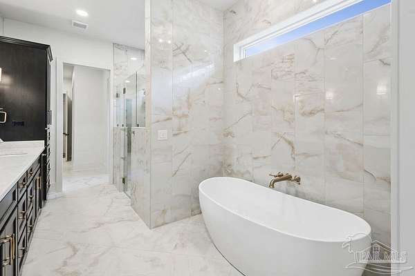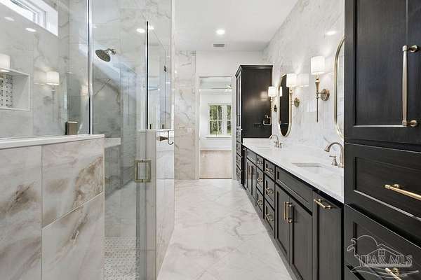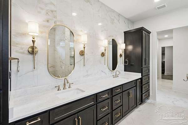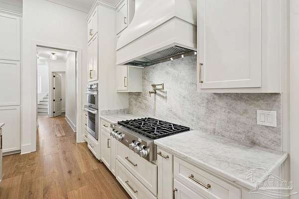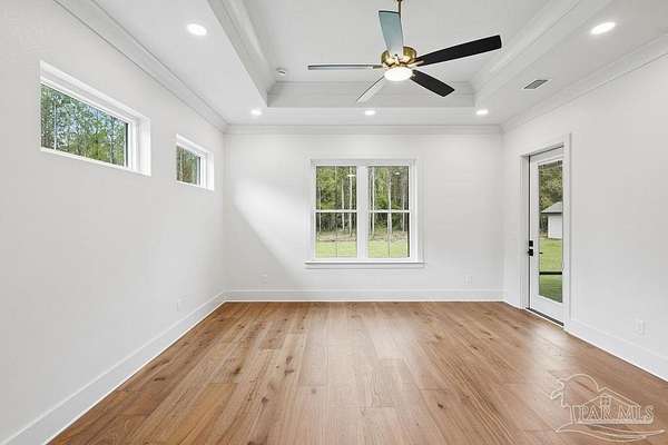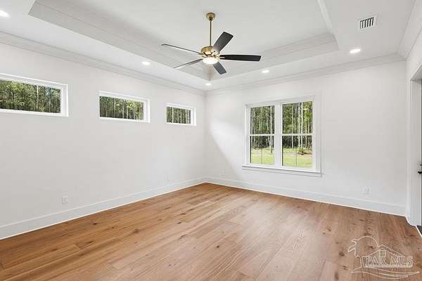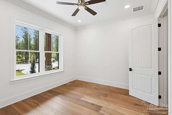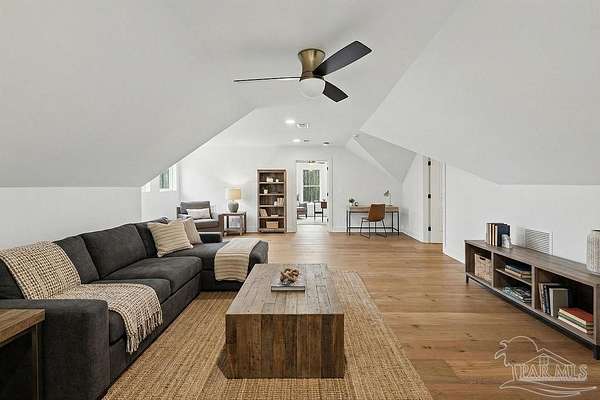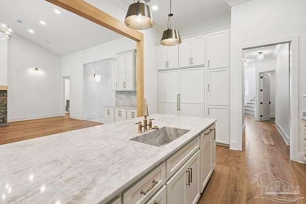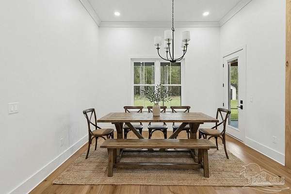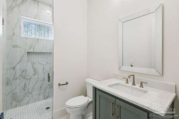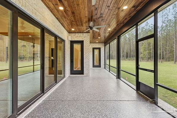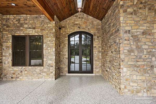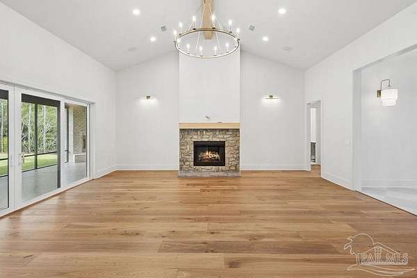 Completed and ready to move in! Introducing The Mountain Brook: a 4,300+ SQFT custom luxury estate perfectly positioned on nearly six private, wooded acres in the highly sought-after community of NatureWalk at Pond Creek. Built by one of Northwest Florida's premier builders, this masterpiece combines elegant design, functional living, and timeless craftsmanship. Step inside to an open-concept floor plan centered around a grand living area featuring a statement fireplace, soaring ceilings, and a wall of windows that flood the space with natural light. The chef's kitchen offers a large island, walk-in pantry, and seamless flow to the dining and living areas - ideal for family gatherings and entertaining alike. The primary suite is a true retreat with dual vanities, his-and-her walk-in closets connected through the laundry room, a soaking tub, and an oversized dual-head shower. Two additional bedrooms with walk-in closets, plus a flexible office, complete the main level. Upstairs, you'll find two bedrooms and a spacious additional living space or bonus room with a full bathroom which provides the perfect guest suite, media room! Outdoor living takes center stage with deep front and back porches accented by elegant columns. The back porch features a full outdoor kitchen, a cozy fireplace, and convenient half bath - ideal for entertaining or future pool access. Additional highlights include a 3-car garage with extra storage, mudroom, and thoughtfully designed spaces throughout. Experience peaceful acreage living just minutes from Pace, Milton, and the Gulf Coast's white-sand beaches, where privacy meets luxury in the heart of Northwest Florida.