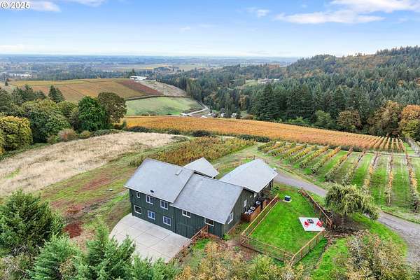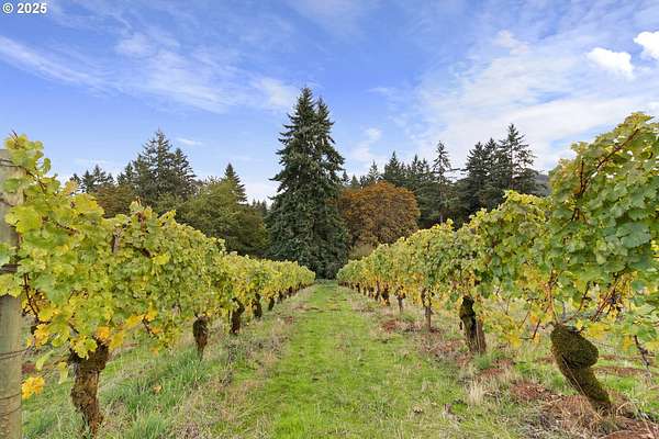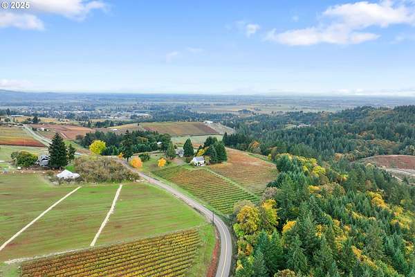 Oregon Vineyard Property is pleased to present this historically significant vineyard property with one of the best locations in wine country. Originally planted in 1970, the property features the oldest vineyard block on Worden Hill Rd., the second oldest in Dundee following the Eyrie Vineyard's South Block and is the fifth-oldest vineyard in Oregon. The property is 41.43 total acres with 11+ planted to vineyard and an additional 10-12 of prime vineyard ground. The 5,254 sq. ft. timber framed retreat center is a beautiful building with vaulted ceilings, open concept main floor, oversized rooms and a lower level work space where wine could be made or other hobbies pursued. The structure could serve as either a home or hospitality center. Both the retreat and 2,484 sq. ft. farm house offer magnificent views of the Dundee Hills and Willamette Valley with Mt. Hood and Mt. Jefferson beyond. The farm house was likely the first on Worden Hill Rd., with a setting this spectacular it is no surprise this location was chosen. The farm house has been updated and modernized over the years and features an addition with master bedroom and en-suite bath. The 2,210 sq. ft. historic barn / tasting room sits amongst the vines and is both welcoming and charming. The property also features 16+ acres of forested land reminiscent of a state park. A year round natural spring feeds into a concrete storage cube, water rights associated with the spring have a priority date of June 6th 1965. There is another year round spring below the retreat that fills a small pond. The pond offers potential to pursue a surface water right and develop a reservoir for irrigation. The property has S, SE & SW aspect, 550'-680' elevation with Jory soils throughout. Rarely does a property with this strong of direct-to-consumer wine sales potential come to market. This is an opportunity to launch or expand your wine business in the epicenter of the Oregon wine industry, on one of the hills where it all started.