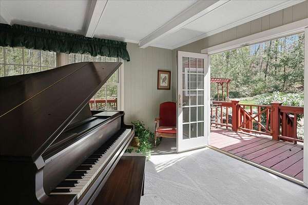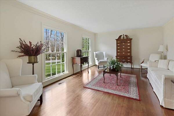 Tucked away on a beautiful and private 1.8-acre setting, this warm and welcoming home offers space, character, and a peaceful setting that's increasingly hard to find. With two additional lots included, you can enjoy the confidence of knowing there will never be neighbors directly behind you. Inside, you're welcomed by a solidly built, well-maintained home featuring hardwood floors and inviting living spaces throughout. The main level includes a formal living room and dining room, a powder room, and a spacious kitchen with pantry and a casual breakfast area overlooking the wooded backyard. A pocket door connects the kitchen to the family room, offering added privacy while maintaining easy flow for everyday living and entertaining. Also on the main level is a generous family room with a gas fireplace and built-in bookcases. Double French doors open to the outdoor space, creating a natural extension of the home where you can relax and enjoy the beautifully maintained, arborist-cared-for woods. Whether sitting on the back deck or under the gazebo, it's the perfect place to take in the peaceful surroundings. Just inside the two-step entry from the garage, you'll find a large laundry room with shelving, extra storage, and convenient access to the backyard. The outdoor setting adds to the storybook feel of the property. A charming bridge crosses the backyard creek and leads to the two additional lots, expanding both the privacy and possibilities of the land. Upstairs, the primary suite features its own office space and full bath. Three additional generously sized bedrooms and a full bath with double vanity provide plenty of room for family or guests. Large windows throughout the home bring in beautiful morning light and offer peaceful views of the surrounding property. This home has been lovingly cared for and filled with meaningful memories. The owner even handcrafted the elegant silk window treatments found throughout the home. In the office closet, you'll discover a built-in model train display (does not convey) that brought years of joy and entertainment to visiting grandchildren. A truly special property where space, privacy, and years of love come together--ready for its next chapter.