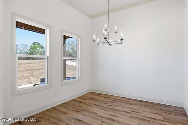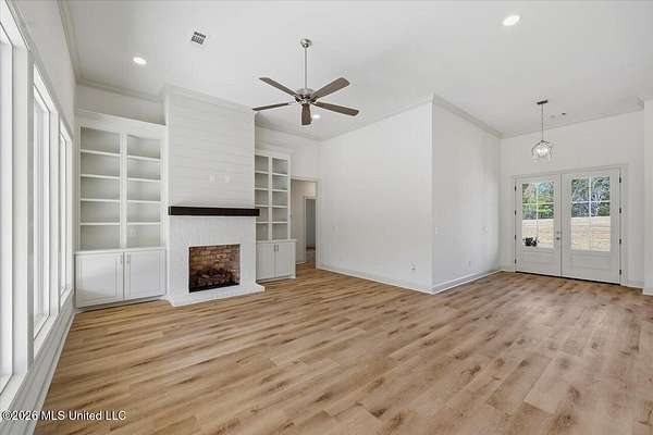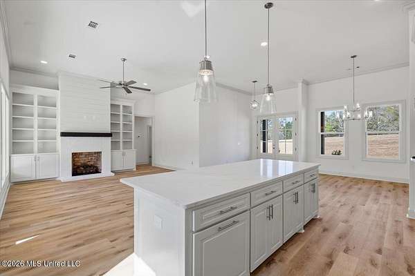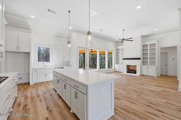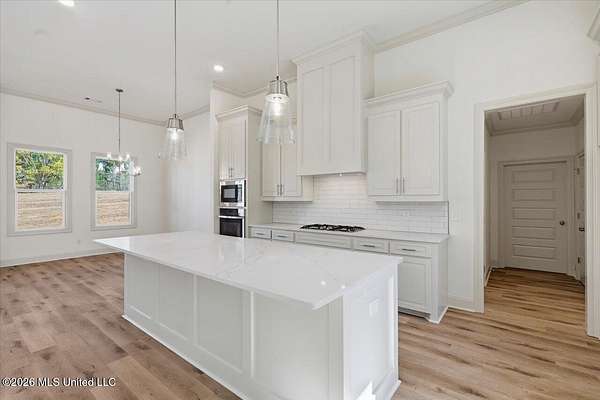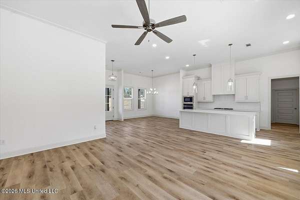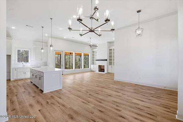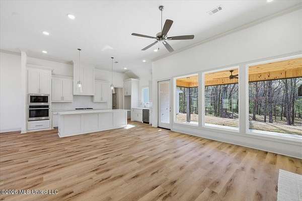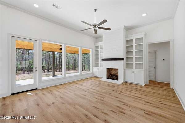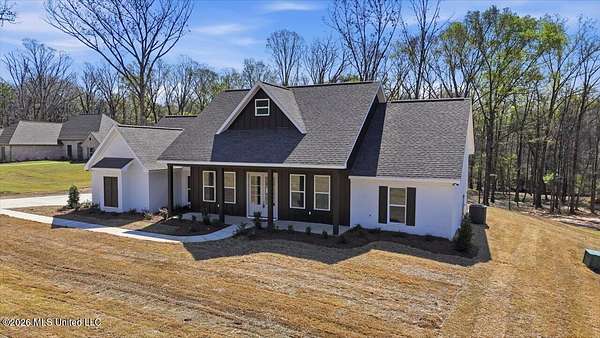 An exceptional, well-built new construction home on 2.65 acres in Mullican Place of Florence, offering standout design and thoughtful details throughout. Limited Time Offer (available on select homes only, and this one qualifies). The Builder is offering $10,000 in concessions that Buyer may use to apply towards closing costs, interest rate buydown fees, or buyer-selected upgrades such as fence, window treatments, additional appliances, and/or gutters. This 4 bedroom, 2.5 bath home features approximately 2,200 square feet and a rare 2.5-car garage, with extra space ideal for lawn equipment, recreational items, or additional storage. A large covered front porch welcomes you into a foyer entry and dining area that flows seamlessly into the open living area and kitchen. The kitchen is a true focal point with a massive island that naturally becomes the gathering spot, along with high-end quartz countertops and a sink positioned beneath a large picture window overlooking the backyard. Durable luxury vinyl plank flooring, LED lighting, tall ceilings, oversized windows, and stylish finishes carry throughout the home, with built-ins framing the living room fireplace and statement windows filling the space with natural light. A hallway off the kitchen leads to the pantry closet, half bath, and laundry room for everyday convenience. The primary suite is tucked away for privacy and features a semi-vaulted ceiling with shiplap accent, leading into a spacious bath with a custom tiled shower, soaking tub, double vanities, and two walk-in closets. The remaining three bedrooms are located on the opposite side of the home, including a front bedroom with a built-in desk area, and share a hall bath with a double vanity. Additional notable features include a tankless water heater, architectural shingle roof, and an enhanced water treatment system. Out back, a huge covered patio with ceiling fan overlooks a deep, partially wooded lot that extends well into the wooded area, including a section mulched by the builder to create usable wooded space; for reference, one side of the lot measures approximately 619 feet deep and the other approximately 922 feet deep, offering privacy and room to enjoy nature. Note: Landscaping and sod are expected to be installed within the next week or two, and the concrete and exterior will be pressure washed and cleaned up, so check back for updated photos.