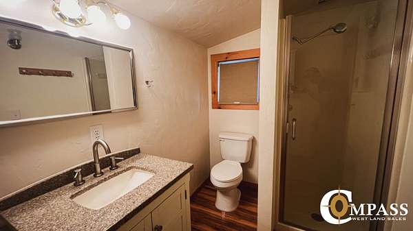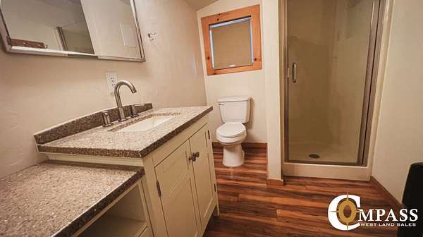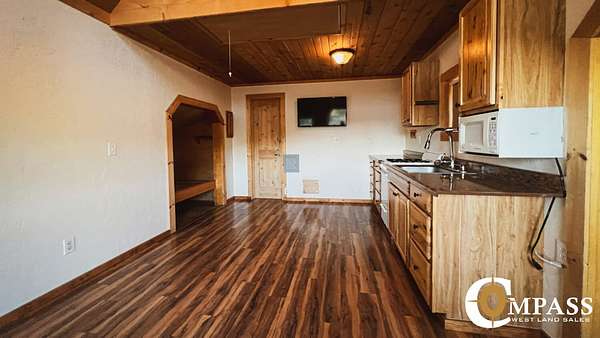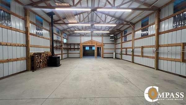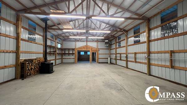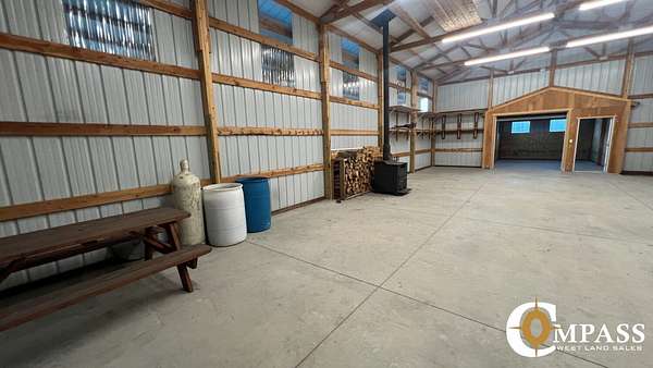 The main shop measures 30'x50' with an additional 15'x20' rear bump-out and is equipped with propane heat, a wood stove, and 110-amp electrical service (wired for 220). It also features two 20'x50' awnings perfect for sheltering equipment, RVs, and vehicles. The second shop is outfitted with propane heat, a bathroom, a kitchenette, and living quarters ideal for guests, workspace, or additional storage.