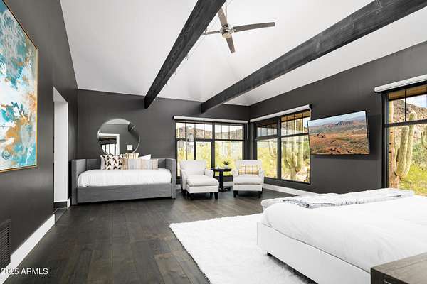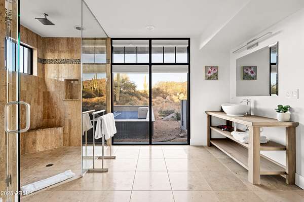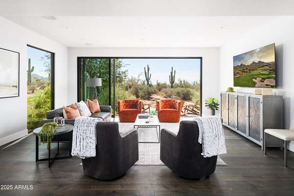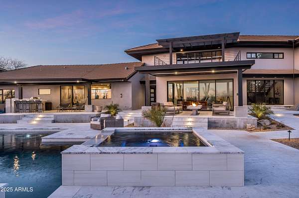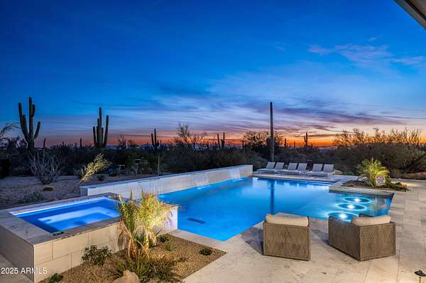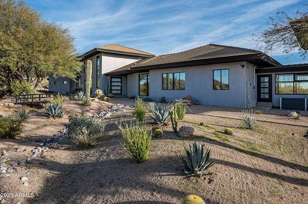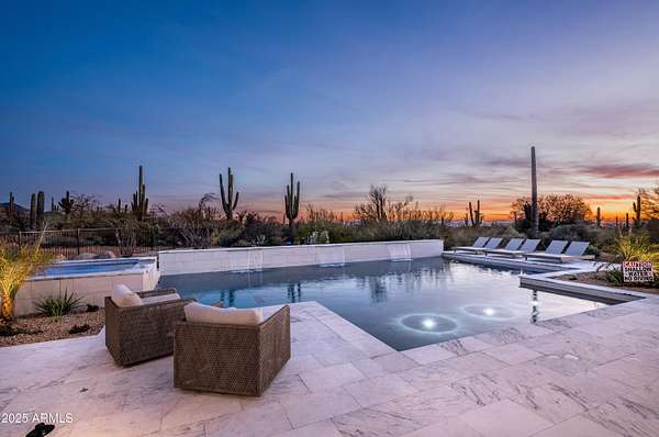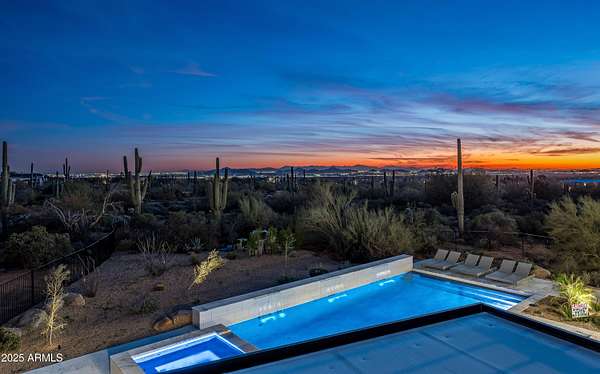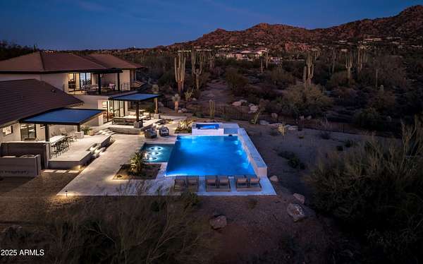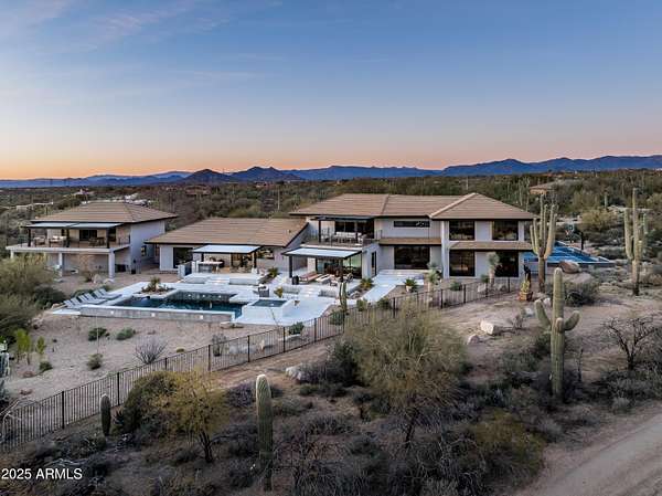 Set on nearly 7.5 acres with unmatched 360 degrees views of Pinnacle Peak, the McDowells, and Camelback, this fully renovated estate features dual primary suites, 4-bedrooms & 3-bathrooms in the main home plus a private 1-bed, 1-bath guest house with full kitchen and laundry. Floor-to-ceiling windows showcase breathtaking desert scenery and city lights. Enjoy a custom wine wall, marble waterfall island, walnut bar-top, and top-tier appliances. Outside, relax in the new heated pool, spa, sport court and multiple stunning outdoor spaces. Homes like this are incredibly rare - don't miss your chance to own a true desert gem! No HOA