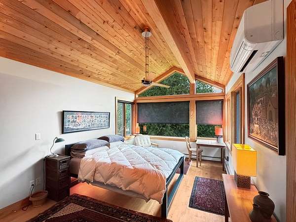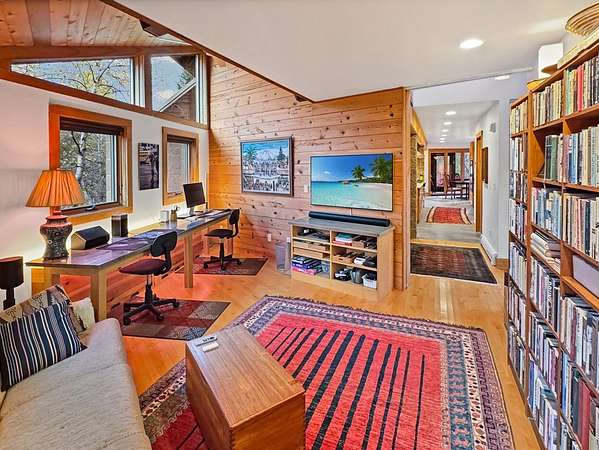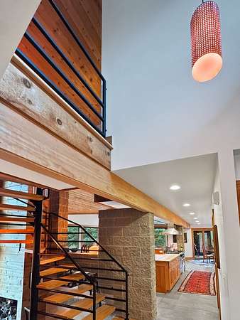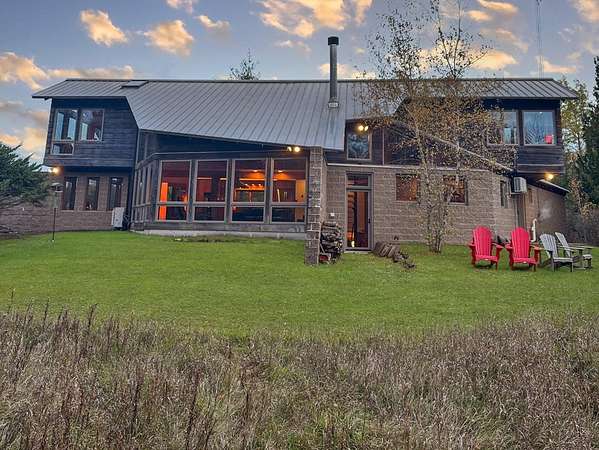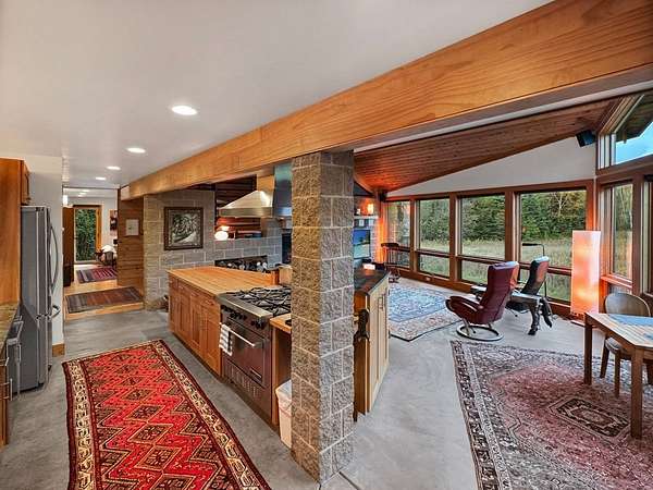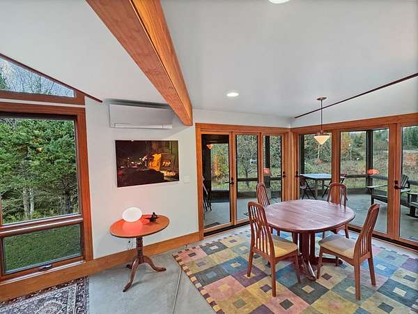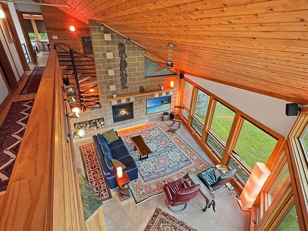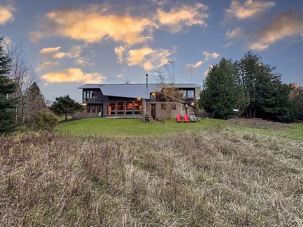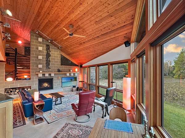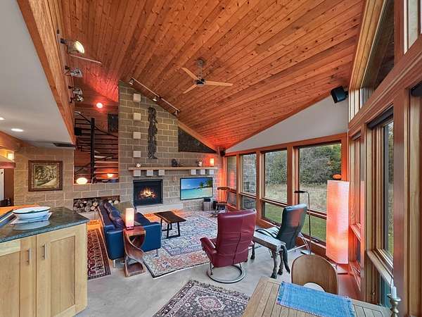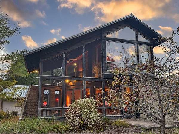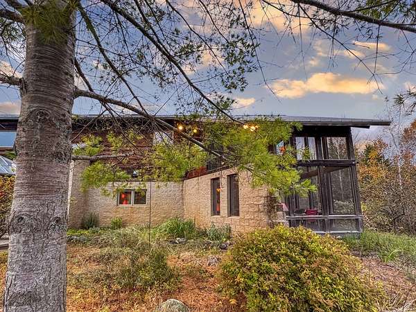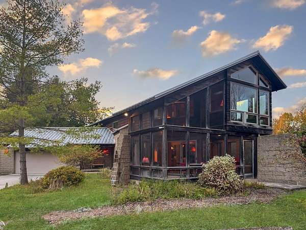Est $6,699/moSurround your senses in nature with this one of a kind contemporary home set on eighty natural acres of woods and meadow. The home was designed by local Architect David Valentine and built for the current owner in 2001. The walls of windows and open architecture invite the private beauty of the natural surroundings to mix with the angles and curves of wood and stone and glass. A south and east facing screen porch looks out onto a meadow and is the perfect place for reflection. Plans for a two bedroom addition with two and a half story silo observation room are already drawn up. Ask Broker for details. Due to the unique room dimensions buyer shall be responsible for confirming measurements. Conservation easements ensure long term privacy.