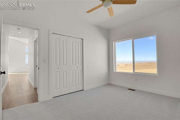 Here's your chance to own 35 acres in Colorado Springs with some of the best views and space around. From this property you can enjoy wide-open Colorado skies with sunrises and sunsets that will stop you in your tracks. The home is a ranch-style layout with 3 bedrooms and 2 bathrooms. It feels bright and open thanks to the large windows and open floor plan. The kitchen flows right into the living room, making it a great space for entertaining or everyday living. Flooring includes luxury vinyl throughout the main areas, tile in the bathrooms, and soft carpet in the bedrooms. The primary suite is tucked away on one end of the house for extra privacy, while the other two bedrooms sit on the opposite side. Downstairs, the basement is unfinished but already pre-stubbed for a bathroom. The builder is even providing plans so you can finish it out when the time is right in the future. The home is also prepped for radon mitigation. You'll also appreciate the peace of mind that comes with a Class 4 impact-resistant shingle roof. The land is zoned A-35, which gives you many options, such as an accessory dwelling, outbuildings, livestock, and more. If you've been thinking about adding a second residence or a mother-in-law suite, this zoning makes it possible to do so down the road. A recent survey is already completed and ready to go. This property gives you space, views, and flexibility, all in one package. Don't miss your chance to tour this incredible home today!