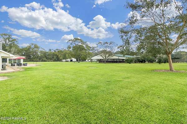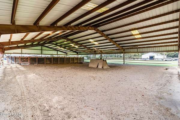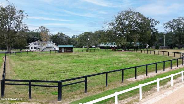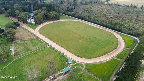 Some properties are built for a lifestyle. Others are built for leverage. Camellia Ridge offers both without forcing you into either. Set on 53 acres in Opelousas, this fully operational equestrian estate is less about what it is today and more about what it allows you to control tomorrow. The infrastructure is established, functional, and ready for immediate use including a five-furlong training track with a two-horse starting gate, two Morton-built barns, and nine fenced paddocks designed for serious operations. The main barn features twelve 12x12 stalls with rubber mats, tack room, wash rack with hot and cold water, grain silo, and air-conditioned office. The mare barn includes a 12x24 foaling stall, four additional 12x12 stalls, foaling cameras, an air-conditioned office, full bathroom, and washer/dryer hookups. Additional improvements include a covered Equicizer and hot walker, 40-foot round pen, 60x80 shop, and loafing sheds in each paddock. The land itself expands the property's flexibility. A stocked pond with gazebo, deck, electricity, water, and aerating fountain creates a secondary focal point suitable for private enjoyment or future use. Fire pit, BBQ area, RV hookups, and abundant wildlife enhance privacy without isolation. The ranch-style residence offers 4 bedrooms with the option for 6, 2.5 baths, a chef's kitchen with commercial-grade appliances, a spacious living area with stone fireplace and exposed beams, sunroom overlooking the estate, and upstairs flex space. Recent upgrades include new windows, a roof less than one year old, and a whole-house generator. Camellia Ridge is not speculative land and not a one-use property. It is a controllable asset with immediate function and long-term optionality. Opportunities like this are increasingly difficult to replicate at today's land and construction costs. Private showings available.