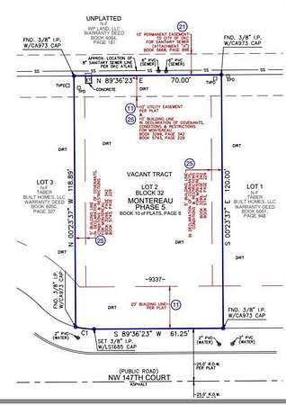 South of NW 150th, west of County Line Rd, from 150th Turn south on Chambord, turn west on NW 147th Terr to Astor lane, turn right and then left of 147th CT. lot is on the right