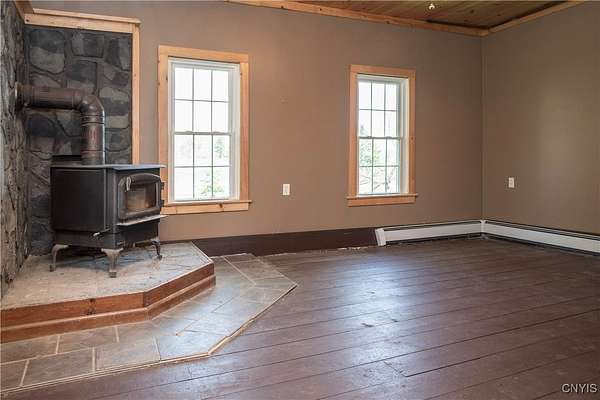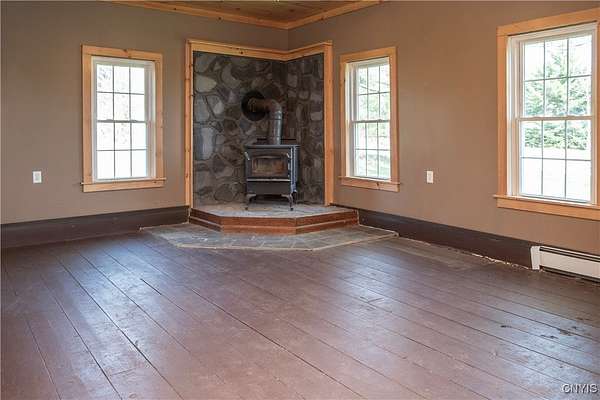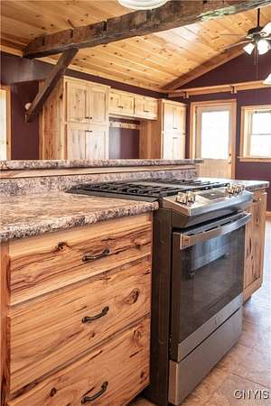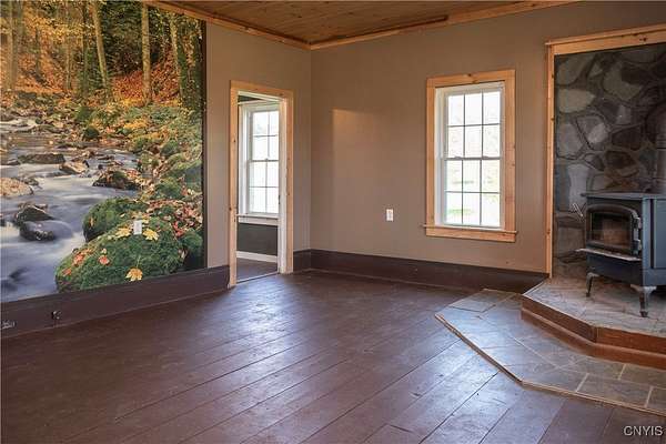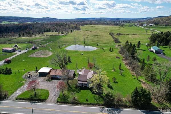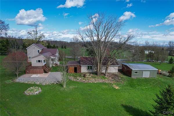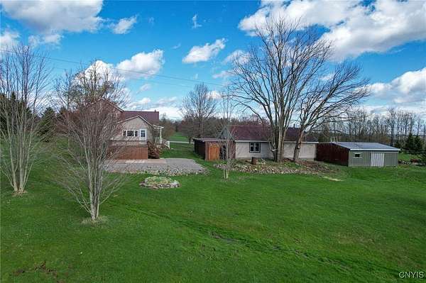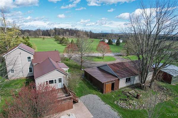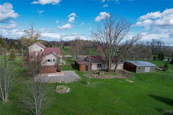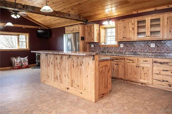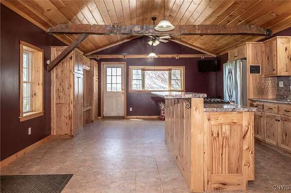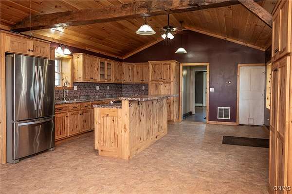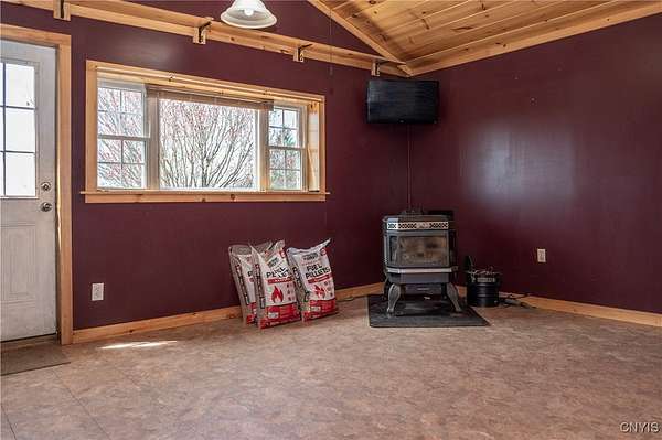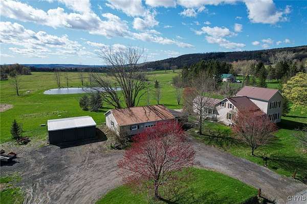 Charming Country Home on 4+ Acres with a Pond-This picturesque 3-bedroom, 1.5-bath home offers peaceful country living at its best. Step inside to a spacious country kitchen featuring a large island, corner pellet stove, vaulted ceilings, and stunning exposed timber beams - perfect for gatherings and everyday living. This spacious home offers a primary bedroom and laundry on the first floor, and a cozy living room complete with a wood stove for warm, relaxing evenings. Upstairs, there are two spacious bedrooms, and a half bath, with a nice landing area that is spacious enough for a den/living room area, play/toy room, or an office. Outside, enjoy 4 beautiful acres with your own private pond, ideal for fishing or simply enjoying nature. A detached two-stall garage provides plenty of storage and workspace. And if that's not enough storage, there is another pole barn/garage to accommodate toys, tools, etc. The property also offers breathtaking sunsets that make every evening unforgettable. Don't miss the chance to own this slice of country paradise!