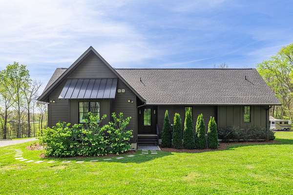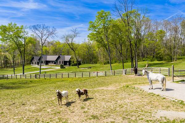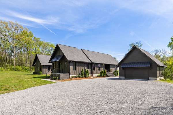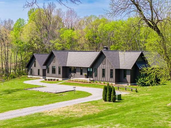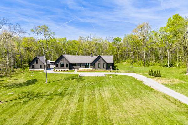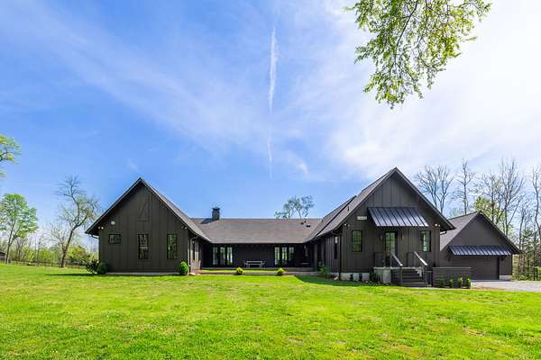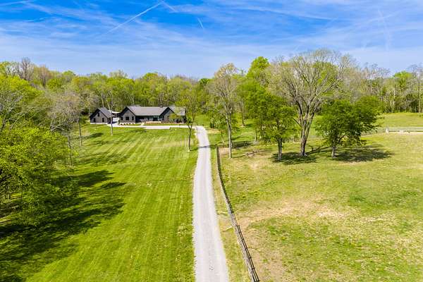 Equestrian masterpiece w/12-acres & 4BR on main level…Marvelous, custom built & architect designed, 1-level, modern home. You don’t find privacy like this in the middle of Franklin. 5-minutes to multiple grocery stores & 1-mile from an equine vet. Refined architecture, milled Walnut wood accents (from the property) & the authentic rhythms of Tennessee horse country. Bonadies Architects designed & thoughtfully imagined for single-level living. Ultra-private, 12-acre estate, zoned for award-winning Williamson County Schools, in the middle of Franklin with NO HOA. Easy Nashville Access. Clean lines define the exterior: striking black metal roofing sweeps over deep charcoal board-and-batten siding, complemented by exposed rafter tails and subtle standing-seam accents. Expansive walls of glass frame views of the surrounding landscape & drench the home in natural sunlight. The heart of the home centers on an open, vaulted great room that flows effortlessly into the gourmet kitchen & formal dining room. French doors open directly onto a sheltered interior courtyard, perfect for a swimming pool, creating a natural extension of the living space that backs to acres of woods & trails. Separate wings extend from this central core to enhance privacy & functionality. The primary wing provides a serene retreat with a cathedral-ceiling bedroom, elegantly appointed bath, ample walk-in closet, and a dedicated office overlooking the wooded grounds. This wing has a separate, covered rear entry that opens to a large boot room with brick flooring, laundry facilities, and drop zone. The guest wing offers three additional bedrooms, en-suite bathrooms, a game room, & a breezeway from the pasture for horse riders. The property combines seamless access to the area’s finest amenities with the quiet pleasures of equestrian life. Time spent here feels both timeless & entirely contemporary—a curated sanctuary where memories will flourish & legacies grow across generations.