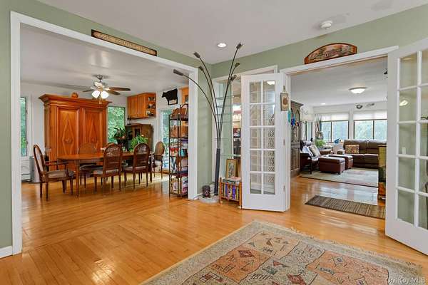 Welcome to this expanded Cape Cod home, set back from the road and surrounded by nature, offering a rare blend of privacy and charm. With four bedrooms and 2.5 baths, the home features an easy flow between the main living spaces, including a spacious eat-in kitchen, with high-end appliances, and an inviting dining room-perfect for entertaining. The cozy family room is centered around a brick fireplace with wood stove insert, while French doors throughout bring in natural light and a touch of elegance. Flexible spaces provide options for a home office or a first-floor primary bedroom. Beautiful wood floors throughout. A tiered wraparound deck off the dining room offers a beautiful setting for outdoor dining and relaxation. Additional highlights include a two-car tandem garage with extra parking, electric car hookup, abundant windows, a generator hookup, and low taxes. The property consists of two separate tax lots being sold together, just one hour from NYC with convenient access to major highways (.06 miles to the Taconic State Pkwy)-Don't miss this wonderful opportunity.