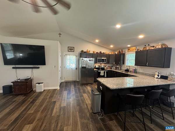 Est $2,203/moBeautiful move-in rambler on close to 2.7 acres. NO HOA. Privacy awaits on this 4-year young home. Main level offers 1400 finished square feet with 3 bedrooms and 2 baths. Open floor plan with vaulted ceiling in living/dining area. Granite counters in spacious kitchen with stainless steel appliances. Additional 1300 square feet in unfinished walk-out basement. Double hung tilt windows, covered front porch, Trane XR-14 efficiency heat pump, Moen faucets, 6-panel interior doors, ceiling fans plus fenced backyard.