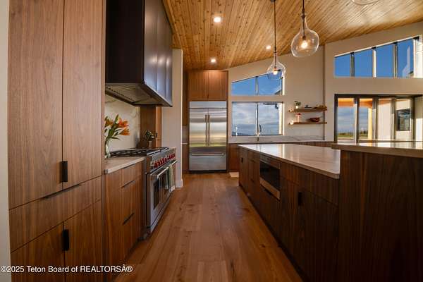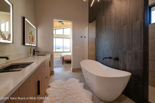 Discover mountain living at its finest in this 4,696 sq. ft., 5-bedroom, 3-bathroom home, located in the Basin Meadows subdivision, one of just seven lots. Enjoy sweeping views of the Tetons, Snake River, and Big Hole Mountain ranges from this nearly 3-acre property, offering both privacy and proximity to downtown Victor and National Forest Service access. The open-concept design features a gourmet kitchen equipped with high-end Wolf, Sub-Zero, and Cove appliances, providing the perfect blend of luxury and functionality. Recently landscaped with gorgeous mature pine and aspen trees, the property overlooks a tranquil pond, creating a peaceful and natural retreat. Perfect for the equestrian, the property allows up to two horses and is ideally positioned near snowmobile and dirt biking trails, making it an outdoor enthusiast's dream. With adventure at your doorstep, you're just: 24 miles from Jackson 26 miles from Teton Village 18 miles from Wilson 23 miles from Grand Targhee Resort Whether you're hitting the slopes, exploring scenic trails, or enjoying the local charm, this home offers both luxury and convenience.