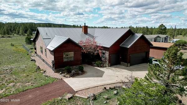Enjoy mountain living at its best with this spacious home situated on over 2 acres surrounded by beautiful meadow and pine tree views. Featuring a 3-car garage, storage shed, and plenty of room for all your toys and equipment. The home boasts a split floor plan, a cozy wood-burning fireplace, and charming cedar siding that blends perfectly with the natural surroundings. Recent upgrades include a new metal roof and luxury vinyl plank flooring (2024), along with a newer furnace and water heater for added peace of mind. Relax on the covered deck while watching local wildlife wander through the property. Horses are welcome, and you're just minutes from scenic mountain trails - the perfect combination of comfort, space, and outdoor adventure.