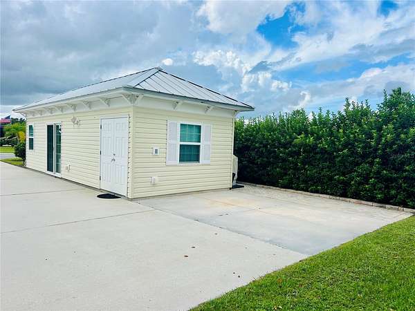 property designed for the ultimate motorcoach lifestyle. This back-in lot features a 26' x 76' reinforced concrete pad that accommodates even the largest Class A and Super C motorhomes with ease. Surrounded by mature trees and peaceful views to the rear, it offers both privacy and a serene Florida setting.