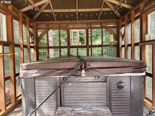 - Free Standing Hot Tub, Garden, Gas Hookup, Guest Quarters, RV Parking, Raised Beds, Security Lights, Tool Shed, Yard