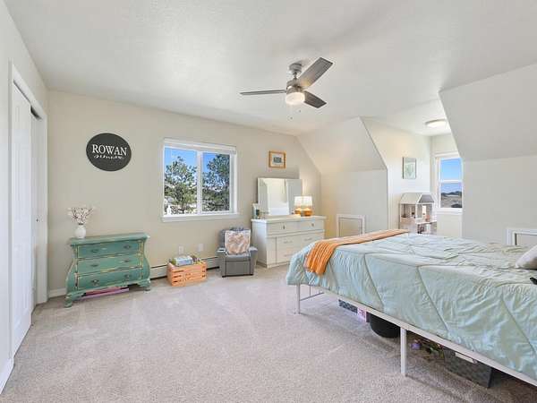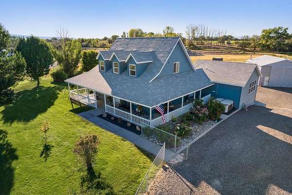 Welcome to your very own Colorado dream retreat! This North Area country estate checks all the boxes - 4 bedrooms, 4 bathrooms, sweeping mountain views, and 4.5 acres of wide-open freedom. From sunrises to sunsets, the wraparound porch is your front-row ticket to some of the best views in the valley. Step inside and you'll find a home that feels both fresh and timeless, with brand-new paint, flooring, lighting, and stylish hardware throughout. The main-level primary suite makes for easy living, while upstairs holds more bedrooms (including a remodeled secret room - yes, a secret room!) that adds a playful twist to your everyday. The kitchen? Well imagine warm butcher block counters meet sleek Samsung smart appliances, upgraded cupboards, and thoughtful details like slide-out storage and custom window coverings. Upstairs boasts brand-new carpet, paint, and fixtures, making everything feel crisp and move-in ready. And don't miss the private lower-level suite - complete with its own bedroom, full bath, and private entrance. Perfect for guests, extended family, or even a rental opportunity. Outside, this property keeps on giving. A 1,500 sq ft workshop with 3 220 plug-ins, a 2-post lift, pellet stove, and evaporative coolers makes it the ultimate playground for projects and hobbies. Add in a shed, chicken coop, fenced pastures, re-landscaped gardens, fruit trees, new sprinklers, a hot tub setup, and RV parking with a hook-up and dump and you've got yourself a mini homestead with all the modern perks. Toss in a fire pit and play area, and you're ready for endless Colorado evenings under the stars. This isn't just a house - it's a lifestyle. Space to roam, room to create, and the peace of country living with every thoughtful upgrade already done. Welcome home.