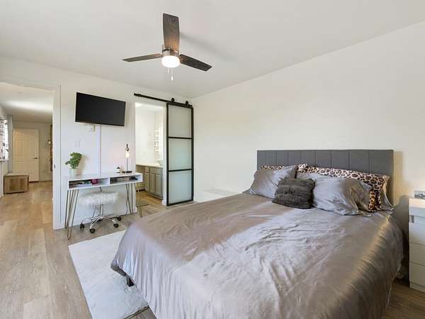 - Ceiling Fans, Laminate Counters, Main Level Primary, Programmable Thermostat, Walk In Closets, Walk In Shower, Window Treatments