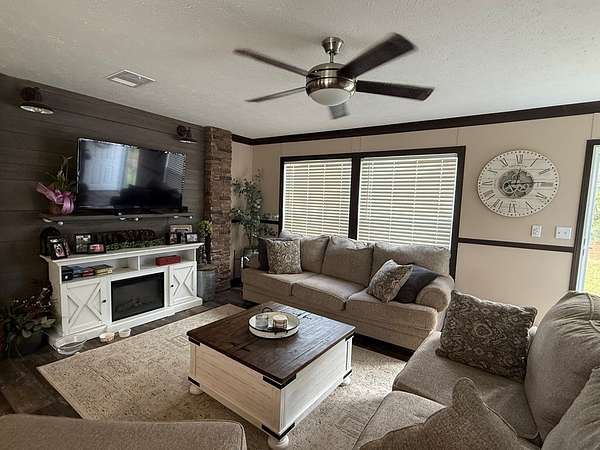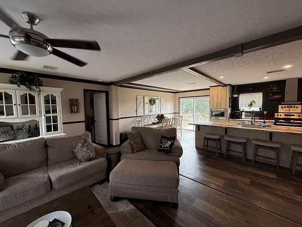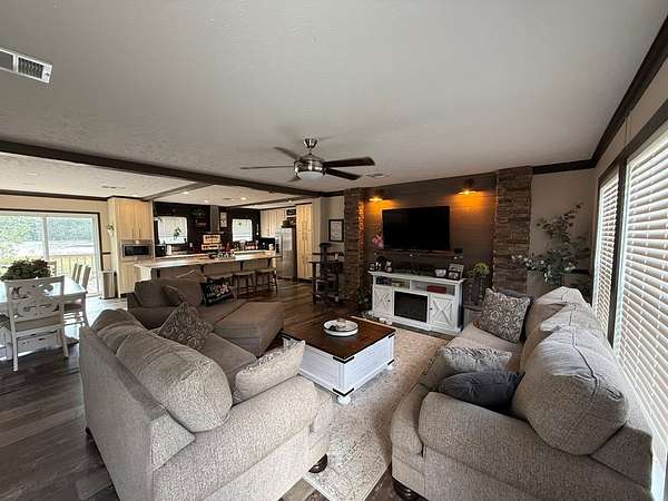What a great find! This like-new 2022 manufactured home offers over 2,000 sq. ft. of living space and sits on 14 acres, m/l that can be left to grow or improved for greater function. The property is set up for country living with some fencing already in place, a 60x40 barn perfect for storing hay and equipment, a large stocked pond, and a second smaller pond ideal for cattle or livestock. Inside, you'll find two spacious living areas and an open-concept floor plan designed for entertaining and taking in the beautiful natural light and peaceful pond views. Step out back to the oversized deck, the perfect spot to relax or host gatherings while enjoying the view. This property truly offers the best of both worlds--a private country setting just minutes from town--making it the perfect place to raise your family, livestock, and live the lifestyle you've been dreaming of.