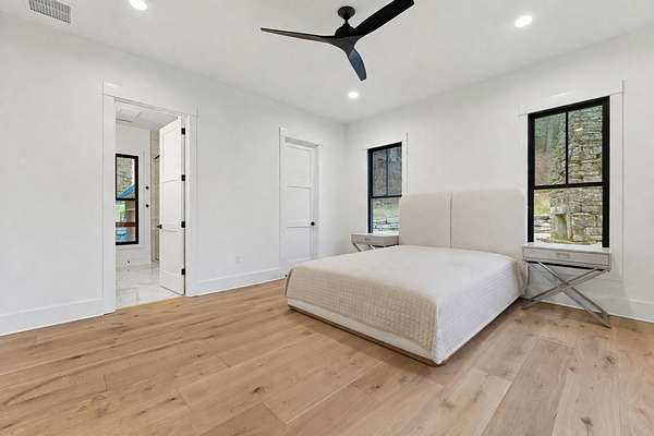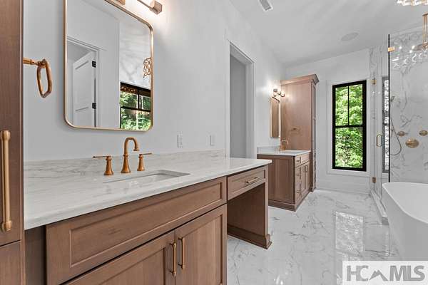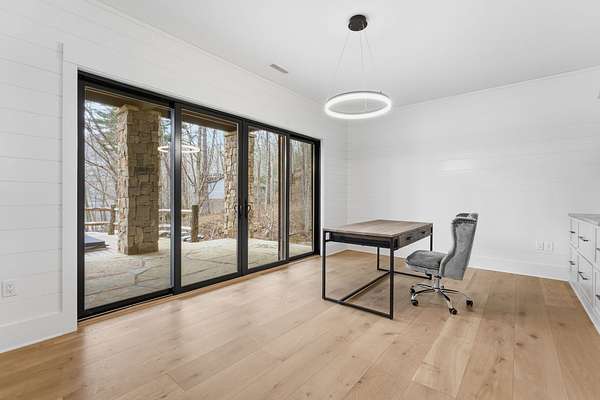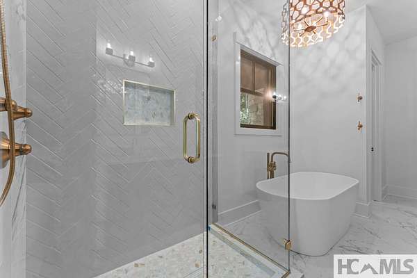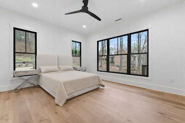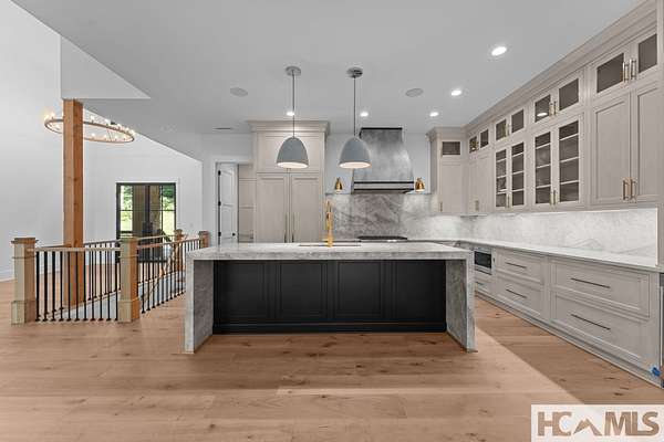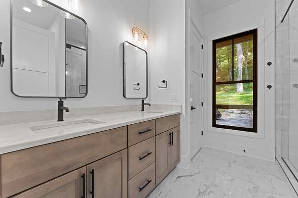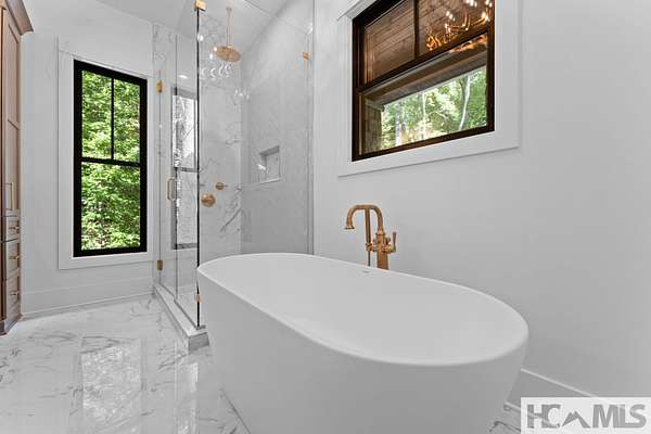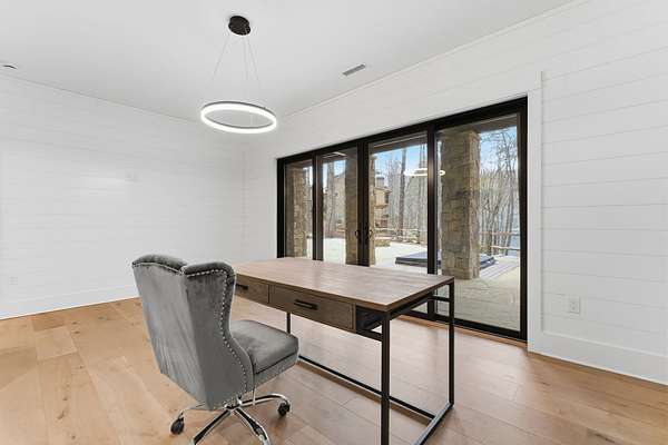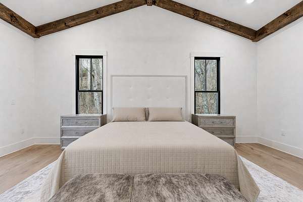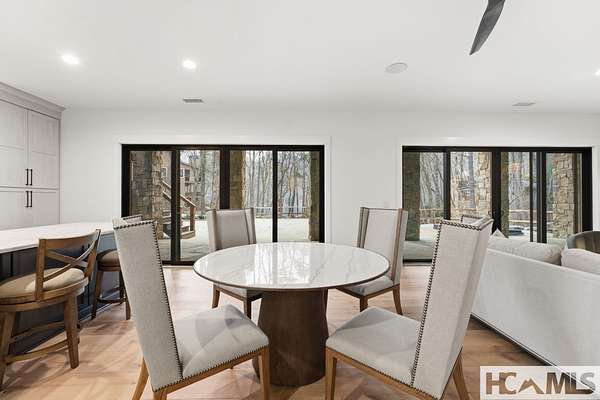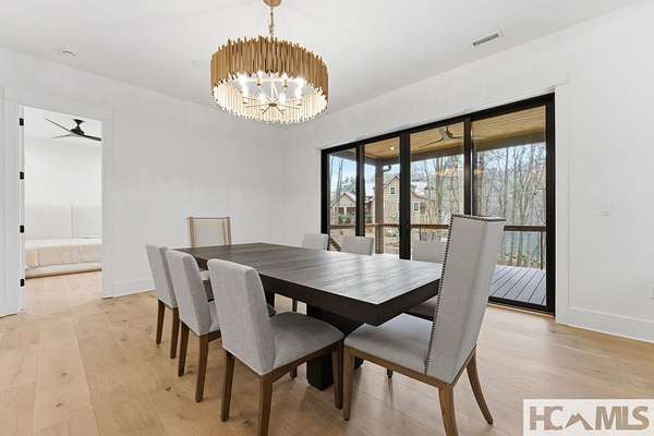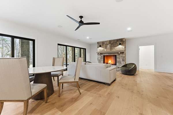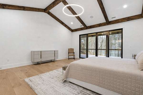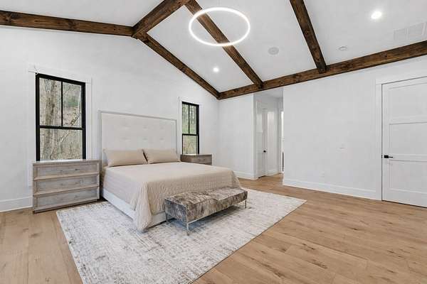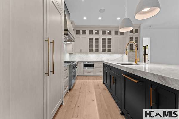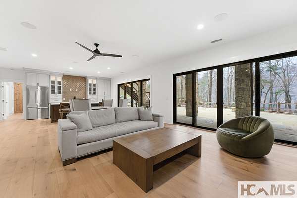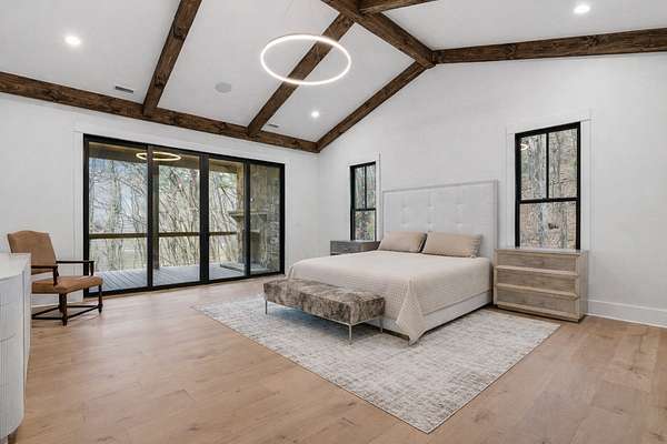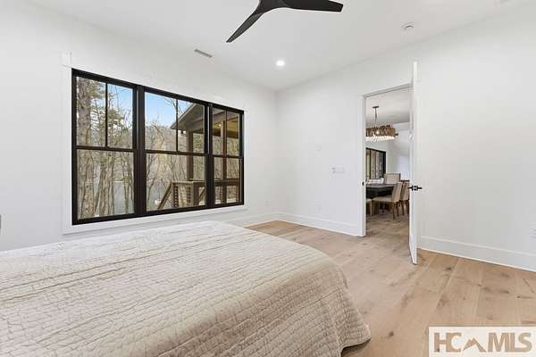 Enjoy breathtaking views of Lake Glenville from this brand-new, high-end construction nestled in the exclusive gated community of Glenshore. This 5-bedroom, 5.5-bath masterpiece-with an additional bonus apartment above the two-car garage-offers the perfect blend of refined elegance and comfortable mountain living. No detail has been overlooked in the thoughtful design and craftsmanship of this home. A historic chimney has been artfully preserved and reimagined as an outdoor fire pit centerpiece, surrounded by intricate stonework that enhances the outdoor spaces. The main level features a spacious primary suite with a luxurious ensuite bath and dual walk-in closets, along with a guest bedroom complete with its own private bath. The open living room, anchored by a cozy fireplace, flows seamlessly onto a covered deck with a second fireplace-an inviting space for entertaining or enjoying quiet evenings by the lake. A formal dining room and chef's kitchen with commercial-grade appliances create the perfect setting for memorable gatherings, while a convenient half bath and full laundry room complete this level. Downstairs, you'll find three additional bedrooms, two bathrooms, and a large family room ideal for games and relaxation, plus a billiard/game room perfect for family game night. One bedroom is currently outfitted as a home office, providing flexibility for remote work or creative space. Step outside to enjoy the beautifully landscaped stone patio, hot tub, and fire pit-all designed for lakeside living at its finest. This exceptional property combines lakefront serenity with timeless design, creating a one-of-a-kind retreat for family and guests.