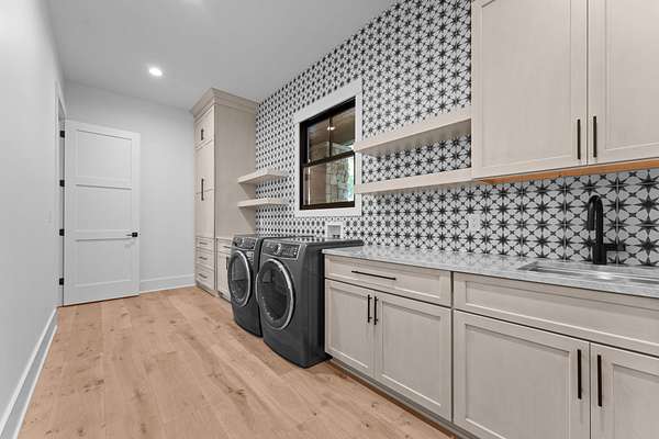 - Built In Refrigerator, Dishwasher, Dryer, Free Standing Gas Range, Gas Range, Microwave, Refrigerator, Stainless Steel Appliances, Washer, Wine Refrigerator