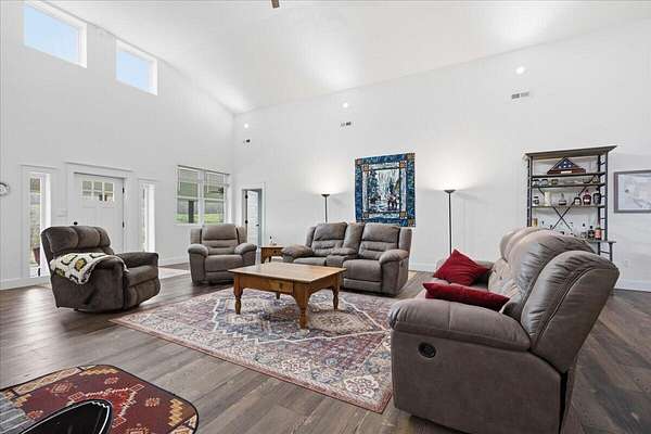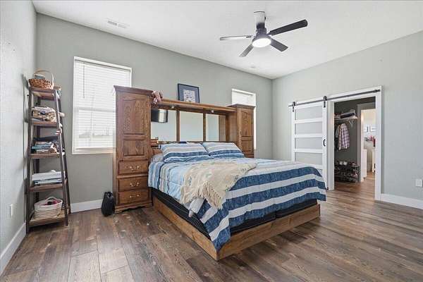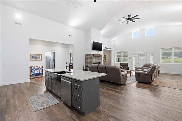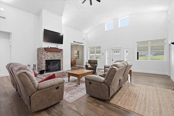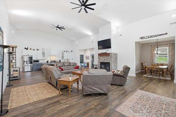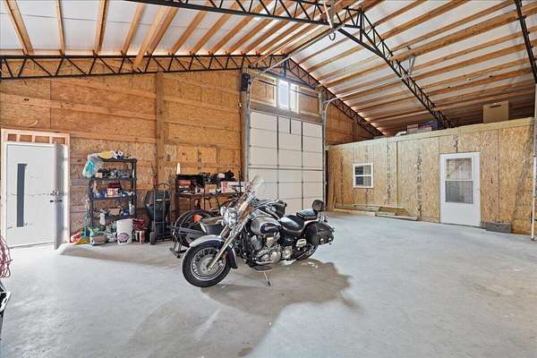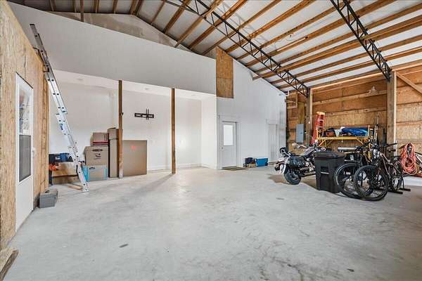 Like new Barndominium home situated on 9.21 acres of level, rolling, cleared, and wooded land. This home offers large rooms, an open-concept living space with high ceilings, lots of natural light, and NO stairs! Quality constructed, this home also offers plenty of storage, an oversized garage with a workshop, and additional RV covered parking and hookups. When you walk through the front door, your eyes immediately focus on the high ceilings, spacious living space, open kitchen with granite countertops and stainless steel appliances. The large fireplace anchors the living room, and you can't wait to see MORE! The area is abundant with wildlife such as deer and turkey. The depth of the acreage in back allows for possible ATV riding and trails, and even some target shooting. Sellers are being relocated and hate to leave, but this allows the opportunity for a new owner to call this quiet haven theirs. Call today for your private tour. All information per CRS and should be verified by buyer and buyer's agent .