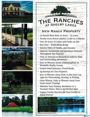 Take Interstate 65 South to Exit 228. Follow 25 to 42. Ranches at Shelby Lakes on the left just before Shelby Iron Works. Go past gate and Lot 27&28 are on the left.