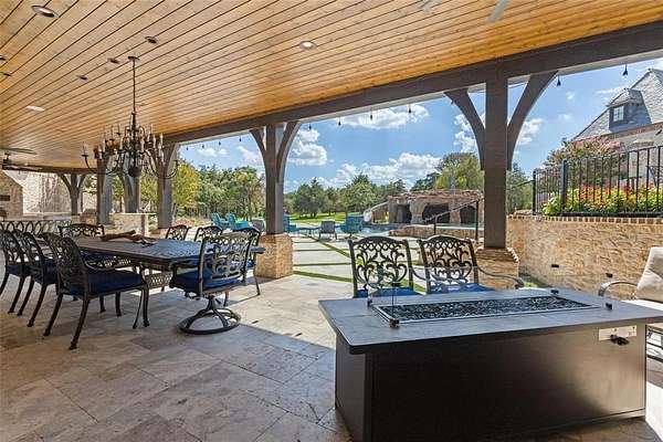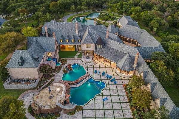 Introducing one of the most majestic gated estate properties in Southlake! 935 W. Dove Road exudes opulence on over 7 acres featuring a private pond with gorgeous fountains. A true dream estate with over 20,708 square feet featuring venetian plaster, marble, onyx, hardwoods, slate roofing & copper gutters. Designed for grande-scale entertaining and family living, this estate has it all: a bowling alley, game room with bar, tiered media room, indoor sports court, exercise room, 10-car garage, and more! A stunning kitchen with designer finishes opens to a luxurious living area. Extraordinary Owner's Quarters complete with living area, grand bedroom with abundant custom closets, and spa-like en-suite opening to private outdoor spa. Park-like acreage boasts lush landscaping and paved walking paths surrounded by native oak trees. Entertain with the resort-style pool with multiple water features, a relaxing spa, and a covered patio with an outdoor kitchen. Come see and experience excellence!
