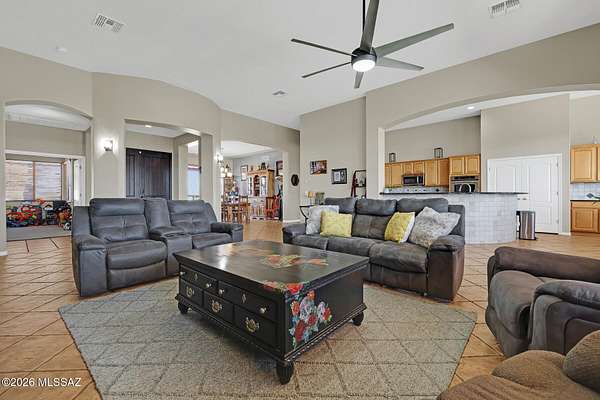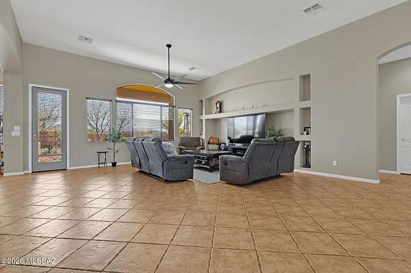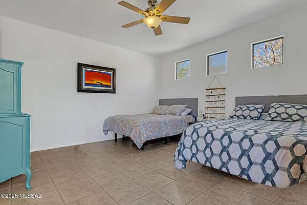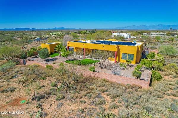 Gorgeous Mountain Views from this Beautiful Southwest Contemporary home with guest house on over 2 acres. Enjoy an open concept, split floor plan with gourmet kitchen w/SS appliances, extended cabinets, formal dining room and den/office. Spacious Primary suite, walk-in closet, double vanity, jetted-soaking tub & separate walk-in shower. Features a Jack & Jill bathroom for 2nd & 3rd bedrooms & loads of storage. Low care front & backyards. Oversized 3 car garage includes an EV charger. Enjoy energy efficiency with Owned (financed) Solar, reverse osmosis & hot water recirculation system. Gated Community.