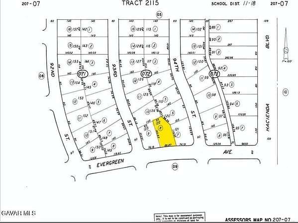 Est $115/moMulti-family residential zoned quarter acre lot on Evergreen Ave between 93rd and 94th St, Just west of Hacienda Blvd. APN 207-072-08-00-6. Zoning is RM1/RM2.