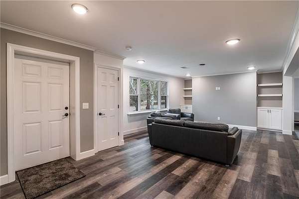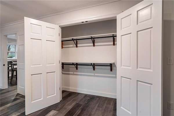 - Bookcases, Crown Molding, Disappearing Attic Stairs, Double Vanity