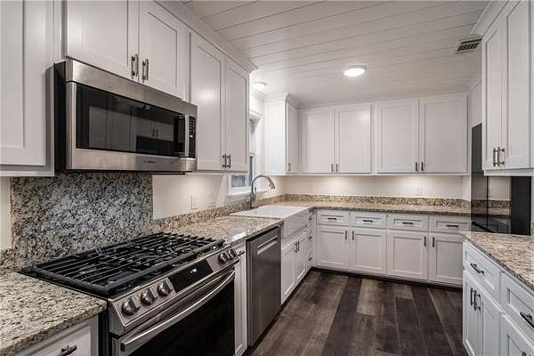 A Dream Home with Modern Amenities and Scenic Views. Nestled in picturesque west Pickens County, this exquisite stepless ranch is ideally located just 15 minutes from Publix. While the original home was built in 1968, the only original feature is the exterior brick, making this home maintenance-free for years to come. This beautifully remodeled mid-century home sits on a sprawling 1.5-acre quiet corner lot, surrounded by majestic old-growth oak trees, providing a serene park-like setting. The house has been completely revamped, and there is not a single step anywhere inside or outside of the house. The main hallway inside is extra wide, and the master bathroom has a walk-in shower. Every inch of the plumbing and wiring has been replaced, 12-gage wiring has been used throughout the house, providing peace of mind and functionality for the new homeowners. New solid core doors were installed all through the home. One of the standout features of this property is the long-distance views of the mountains. The expansive double-entry driveway is all brand-new concrete without a single crack anywhere. The kitchen boasts stunning quartz countertops that not only enhance the beauty of the space but also offer durability and low maintenance. Equipped with top-of-the-line brand-new appliances including Bosh Microwave and Dish Washer, LG Refrigerator. this kitchen is a chef's paradise, making cooking a delightful experience. The kitchen features custom high-end white cabinets that add both style and ample storage space. Brand new Anderson Windows have been installed throughout. Both bathrooms in the house are completely remodeled with modern fixtures and finishes, offering two spa-like retreats within the home. This property also includes a remodeled detached garage equipped with an electric car outlet and workshop-style electrical outlets all around the perimeter. This home is a perfect blend of luxury, comfort, and natural beauty, making it an ideal choice for those seeking a high-end lifestyle in west Pickens County.